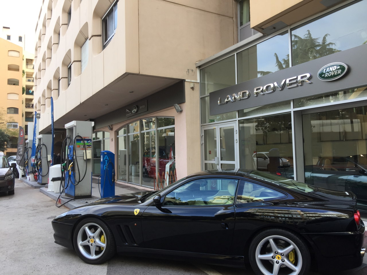 スタジアムの建物はテナントビルそのもので、オフィスが入ったり、さらにモナコ国際大学が入っていたり、あるいはガソリンスタンド、カーディーラーまである。
