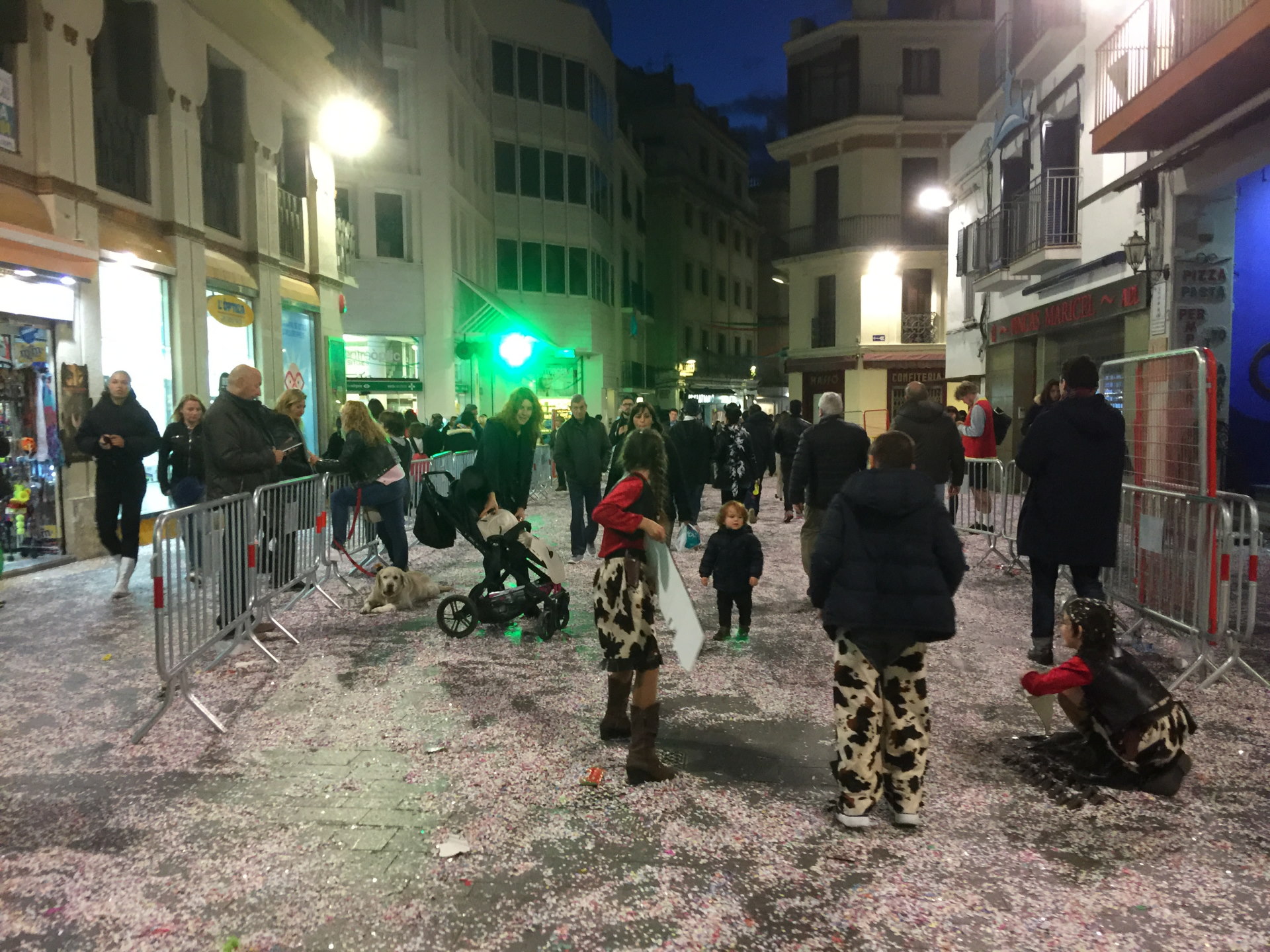 すると、なんとシッチェスもカーニバルの真っ只中らしく、仮装している人や、パレードの後の紙吹雪など、、、街頭はごった返していた。