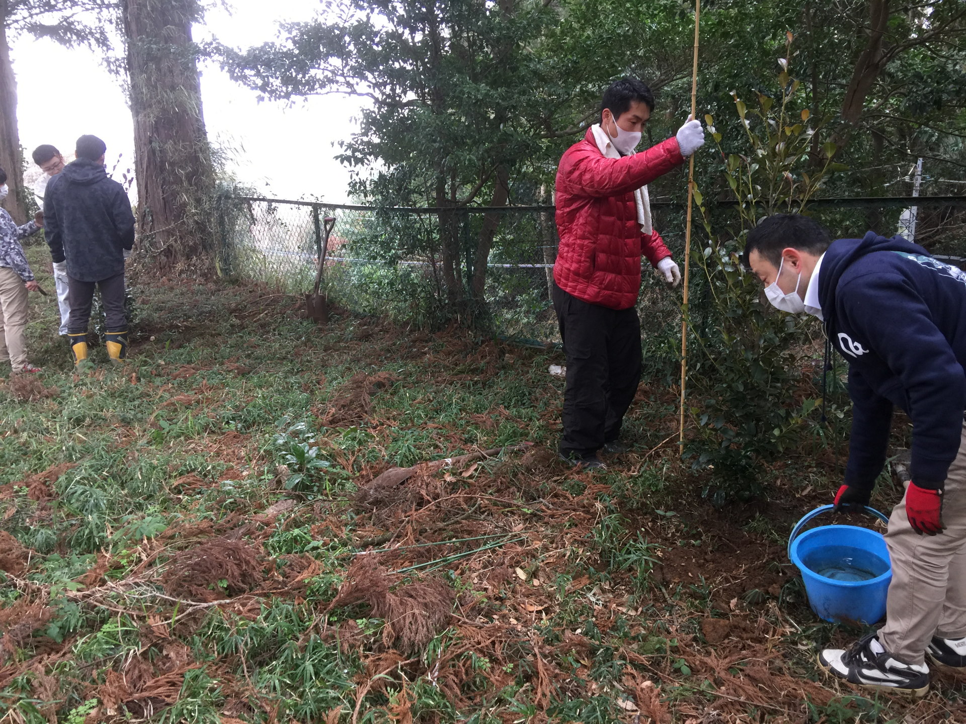 天気が怪しく、途中から雨も降り始めたが、なんとか本降りになる前に十数本の榊を植え終えた。