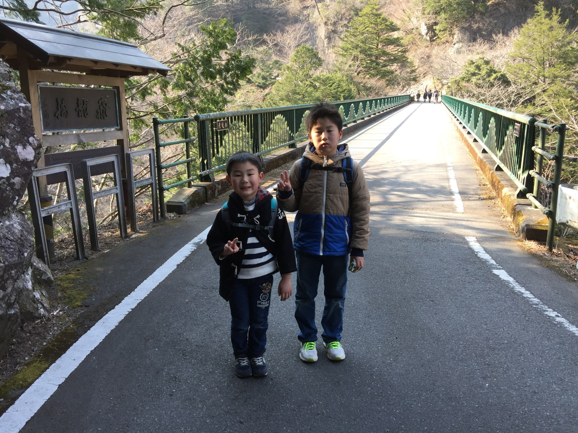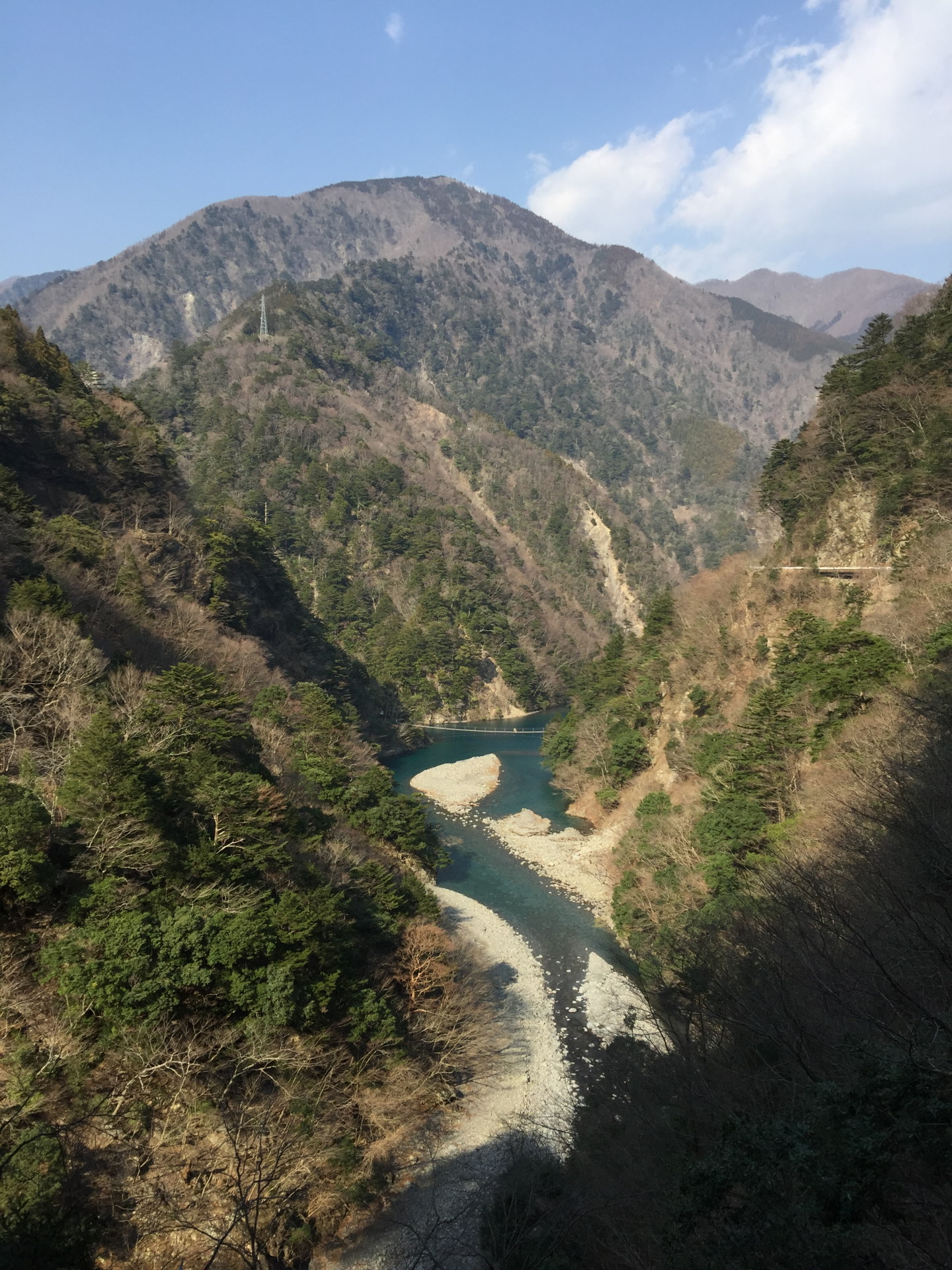 これは渡るまで1時間はかかりそうということで、断念し、私とはっちゃん、ミッキーはさらに奥にある橋を目指す。この橋は吊橋ではないので、行列はなし。奥大井の深い渓谷と、遠くにかかる夢の吊り橋を眺めることができた。