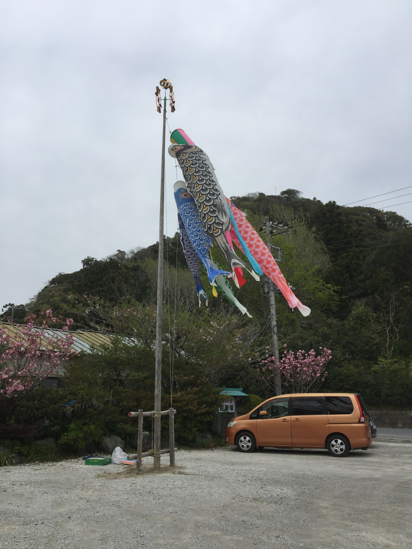 矢車が届き、午後、柏原さん、父とともにこいのぼりを掲揚する竿を立てる。