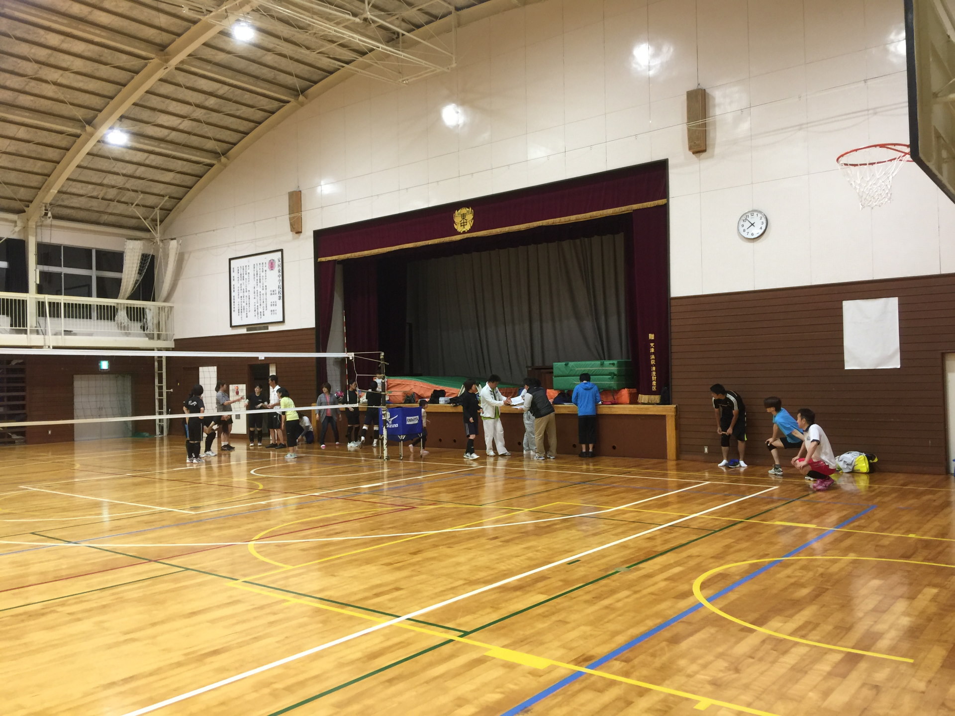 夜、安房東中学校にて天津幼小PTAバレーの結団式。