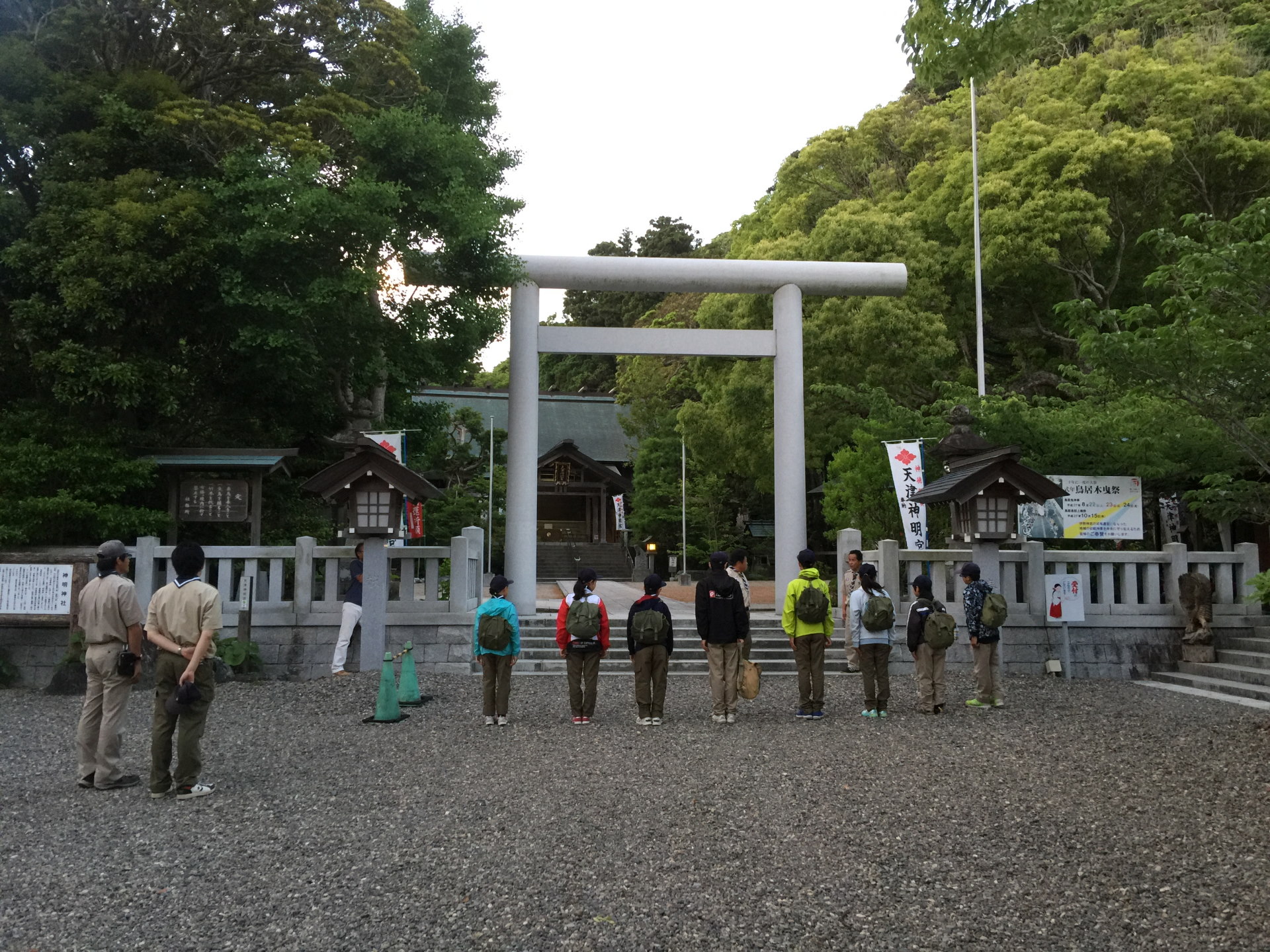 さて、片付けを終えると、今夜オーバーナイトハイクに挑戦するはっちゃんを見送りに神社へ戻る。