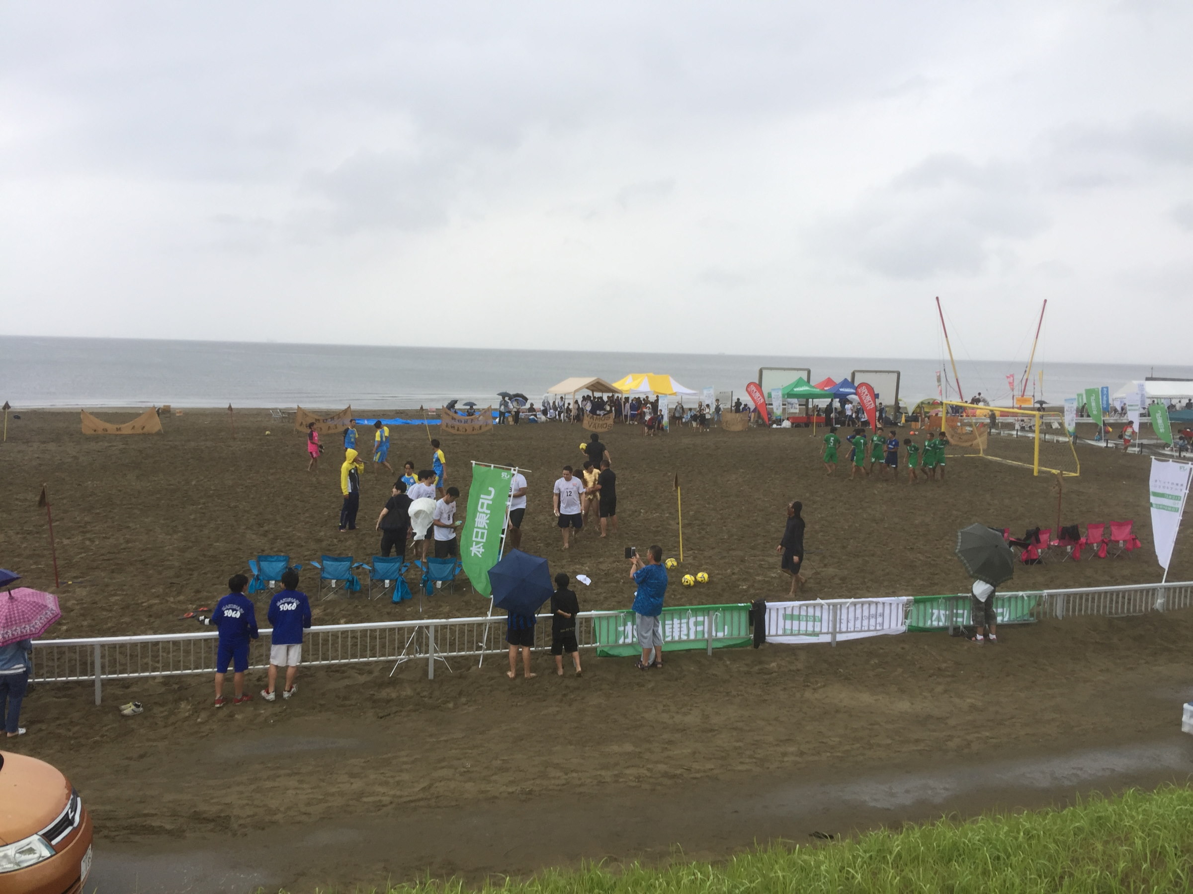 ビーチイベントだけに青空が欲しかったが、朝からあいにくのどんより梅雨空。