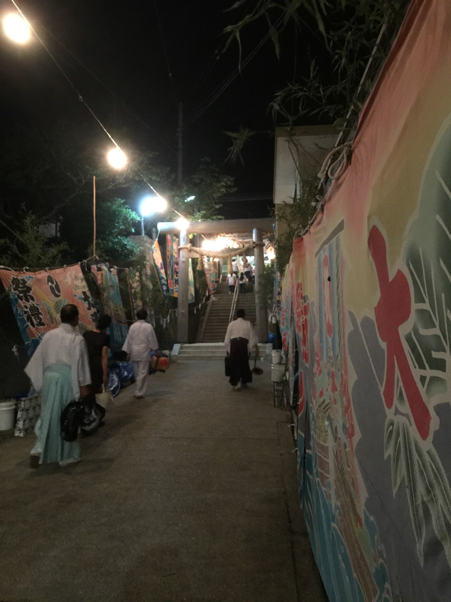 午後9時、参道にて壮観の手打ち式。