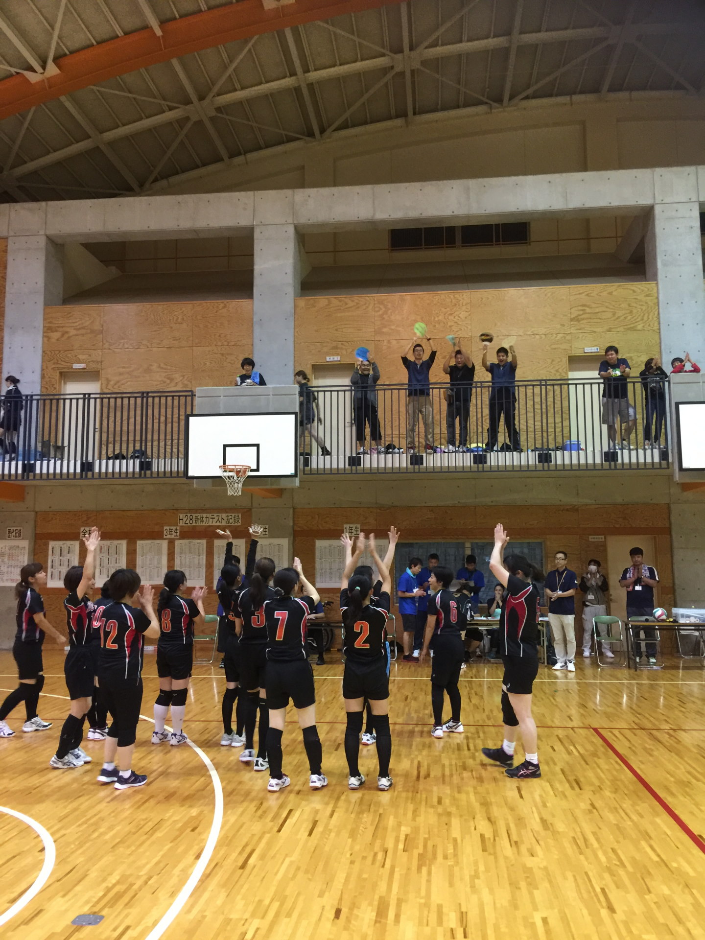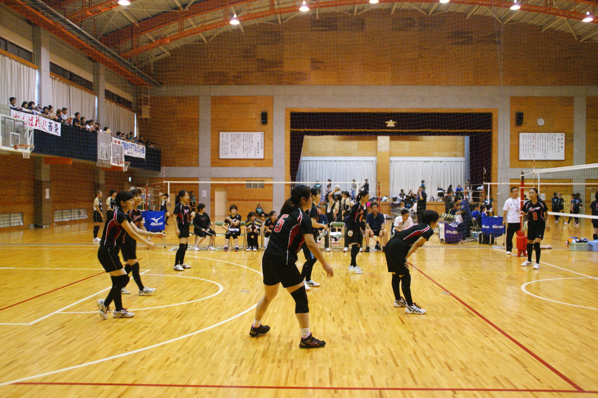 心配された台風18号はノロノロと進みが遅く、PTAバレーボール大会は無事開催することができた。