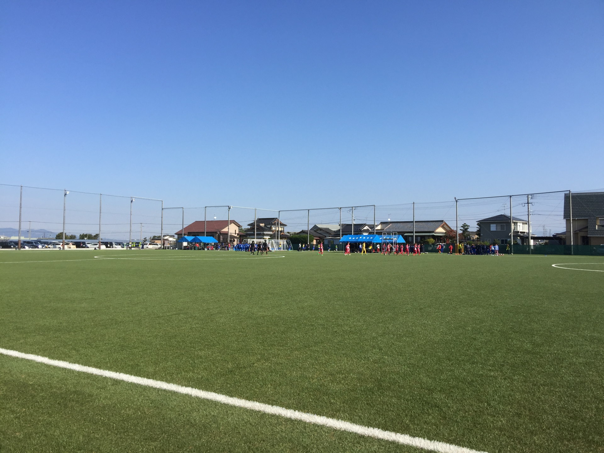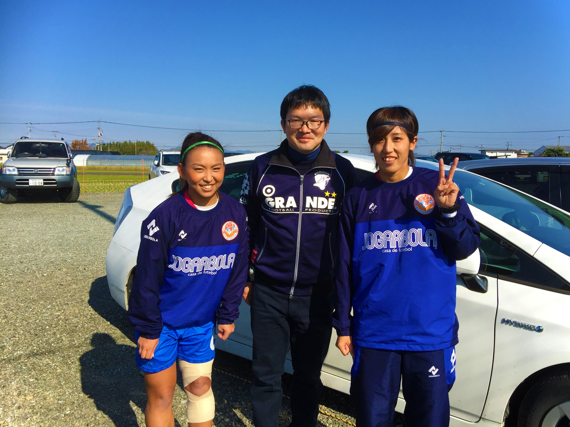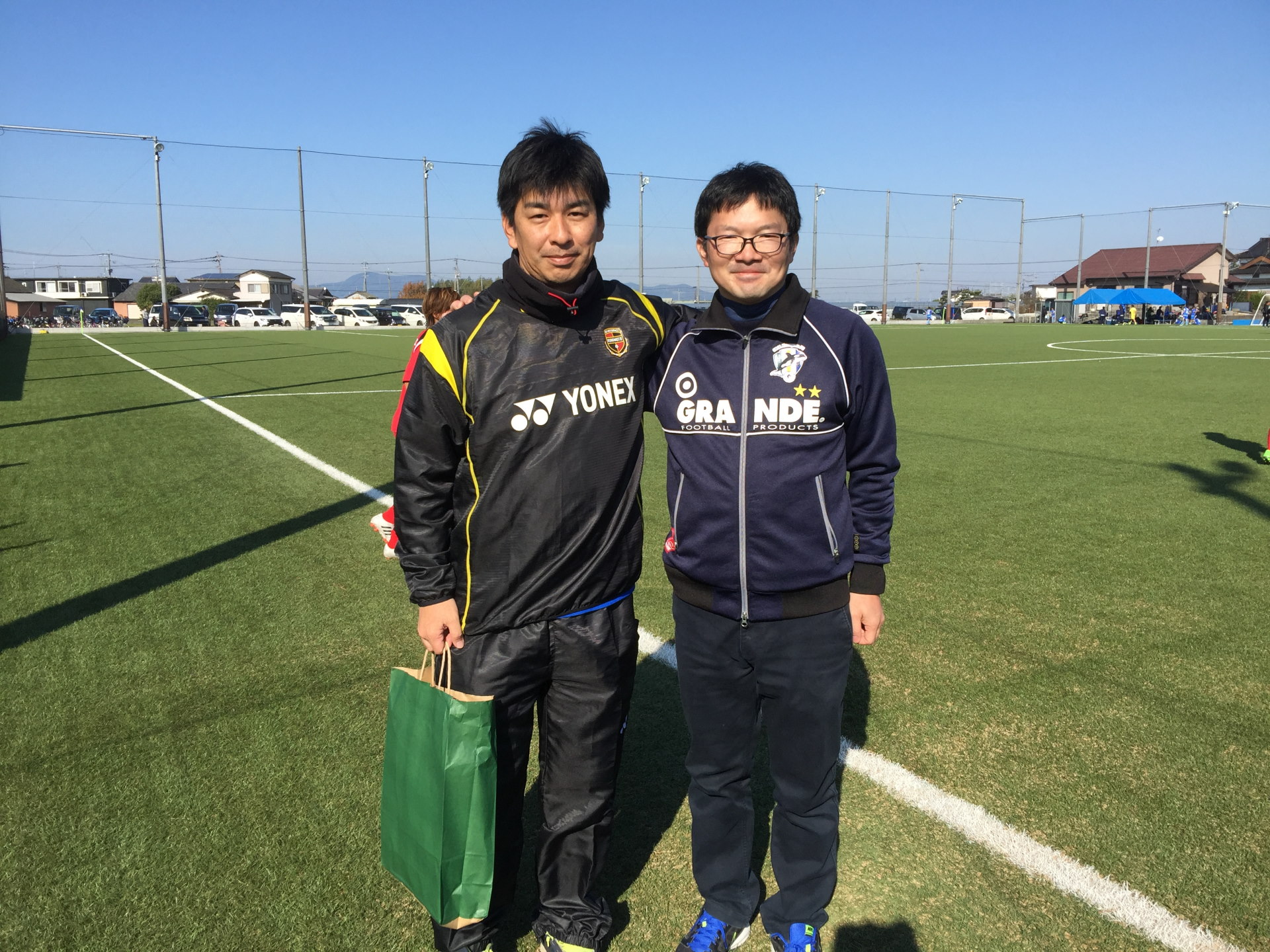サッカー場の駐車場に到着すると、、、なんと、目の前にいきなりアップ中の山?ア選手が登場!