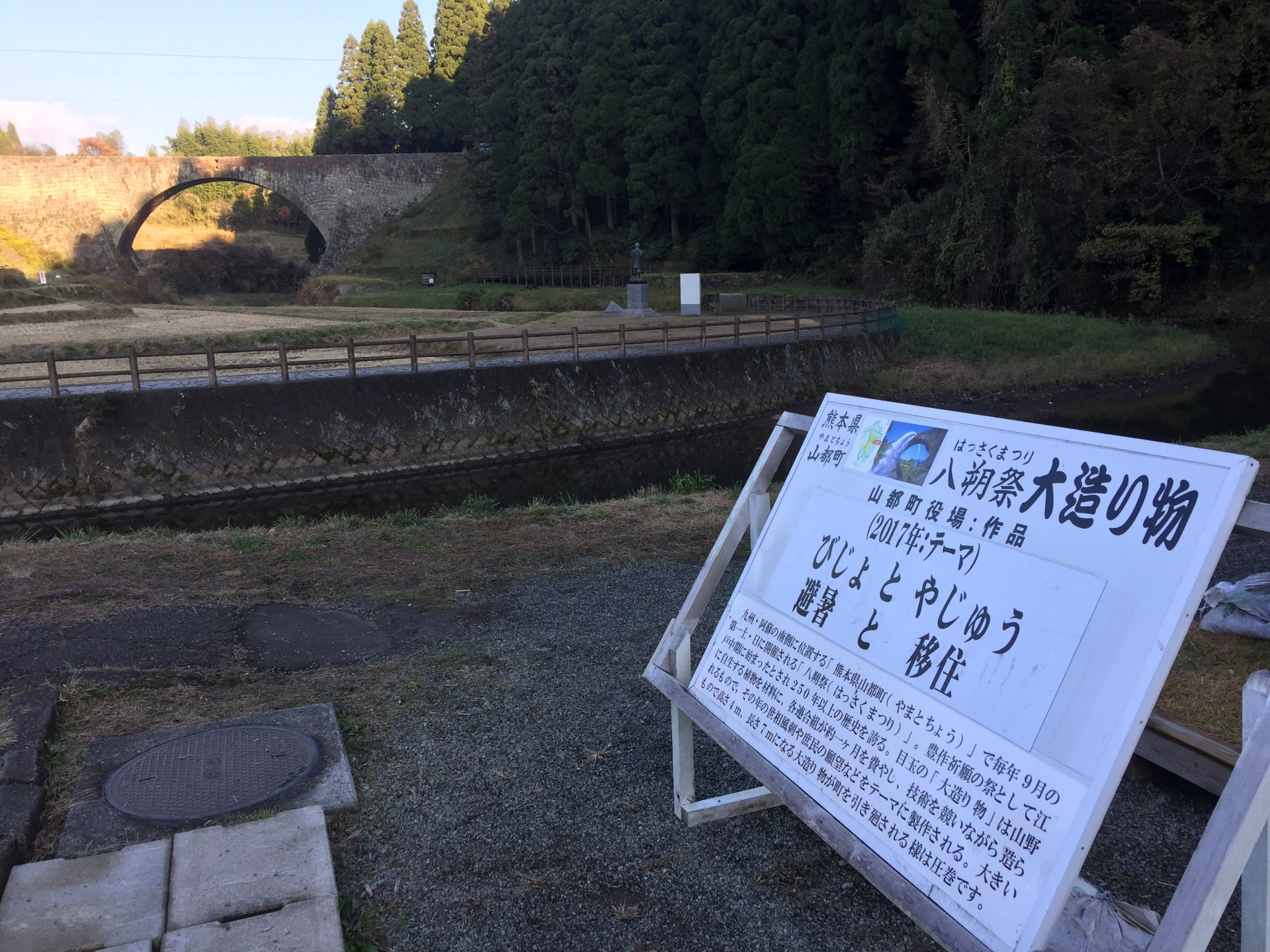通潤橋は震災の影響で、現在復旧工事が行われている。