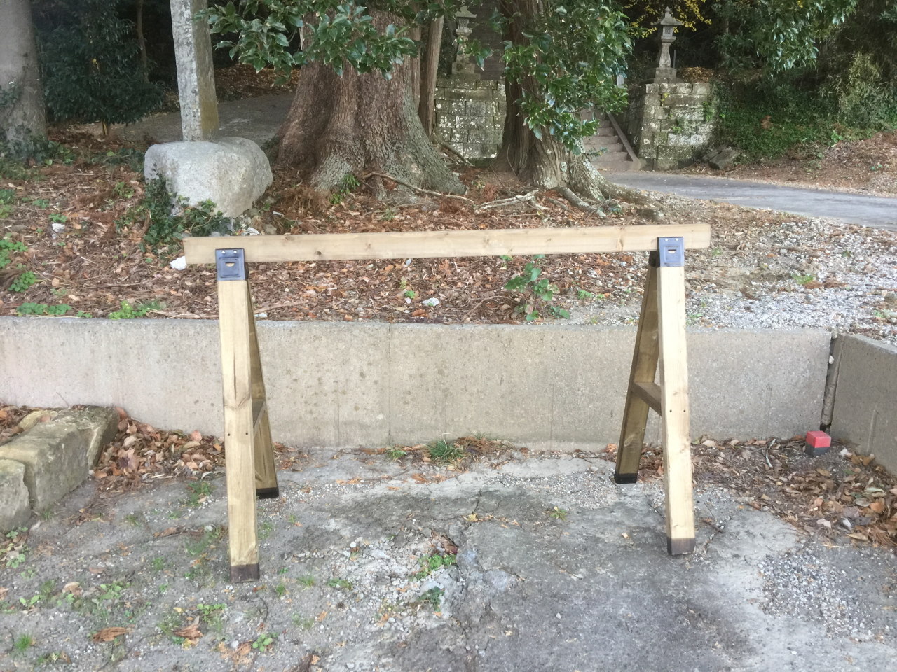 というわけで、正味4時間ほどで、サイクルラック10基の作製作業が終了した。(運搬の都合上、最終的な組み上げは各神社現場で行うことに)