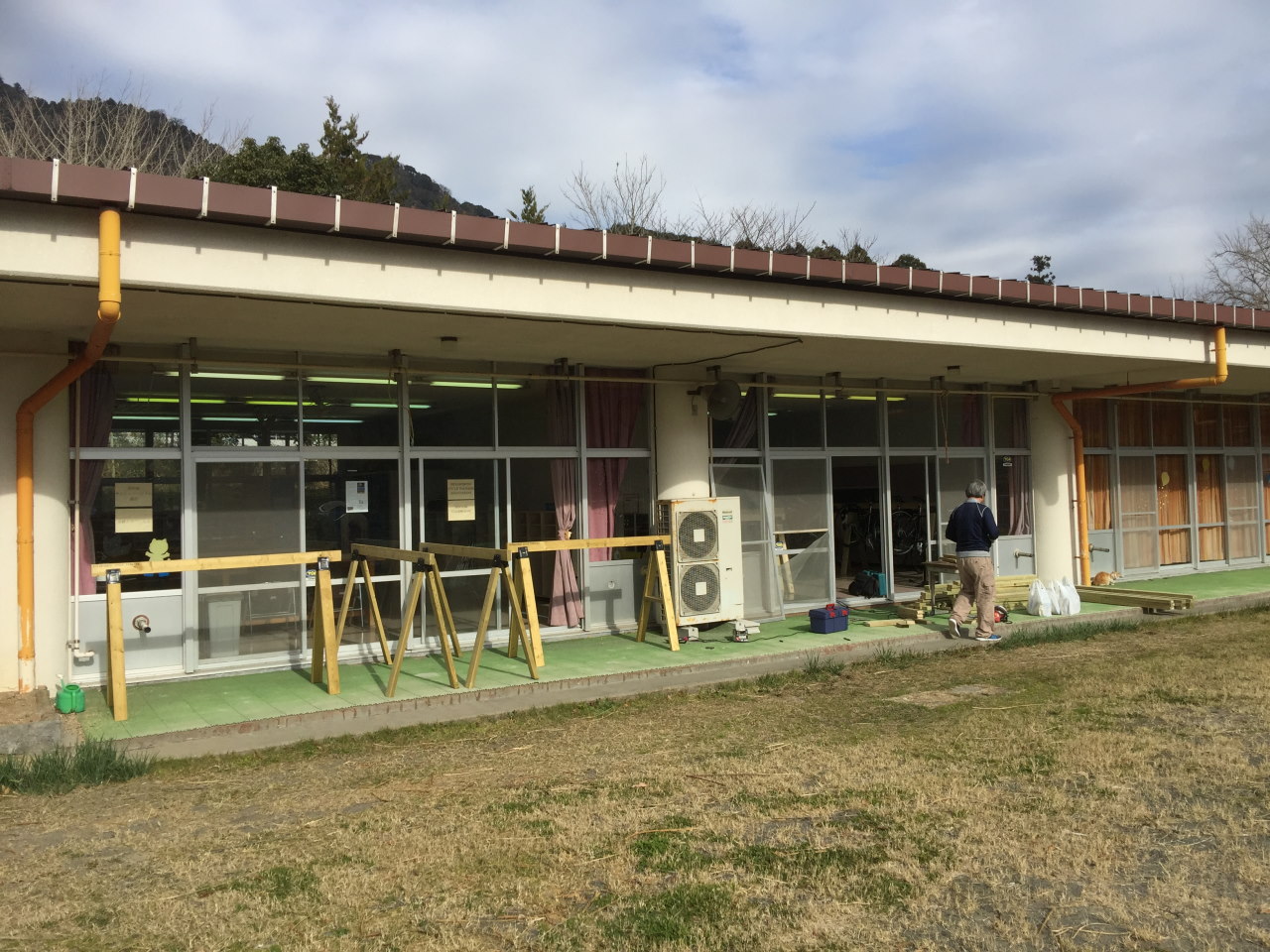 今日は南房総(あわの国)サイクルツーリズム協会が南房総市の旧平群保育所に開設したクラブハウスをお借りして、サイクルラックの作製にチャレンジした。