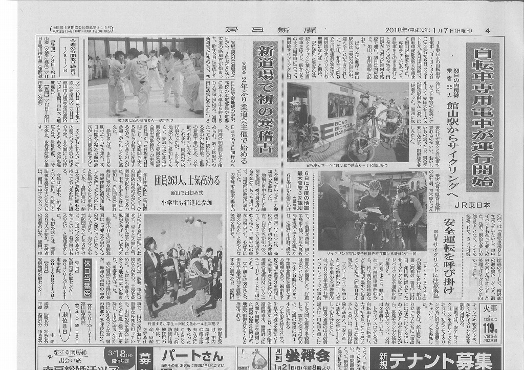 房日新聞では1面トップで房総神社サイクルライド推進委員会の取り組みに関する記事が大きく掲載された。