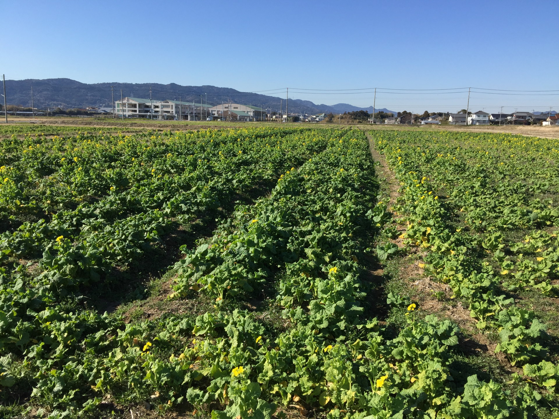 続いて、菜な畑ロードに立ち寄ったが、昨秋の台風の影響でやはり生育がだいぶ遅れてしまっていて、すでに発表されている花摘み開始の延期もやむ無しといった状況であった。