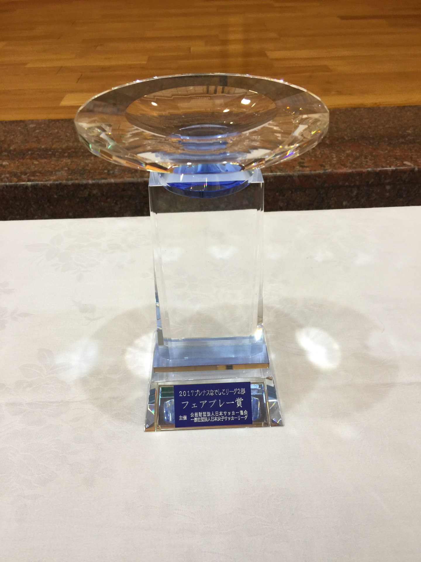 [写真:フェアプレー賞のトロフィー。まじまじと見たのは初めて