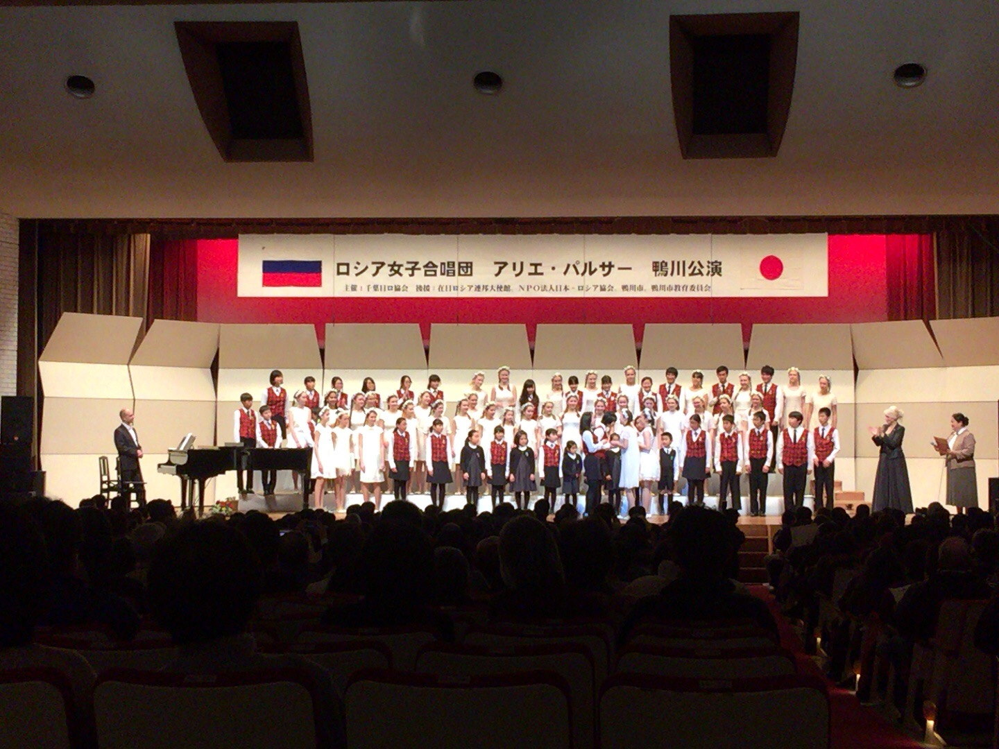 [写真:最後は地元・鴨川少年少女合唱団も加わって、ロシア女子合唱団「アリエ・パルサー」と「ふるさと」を歌った♪