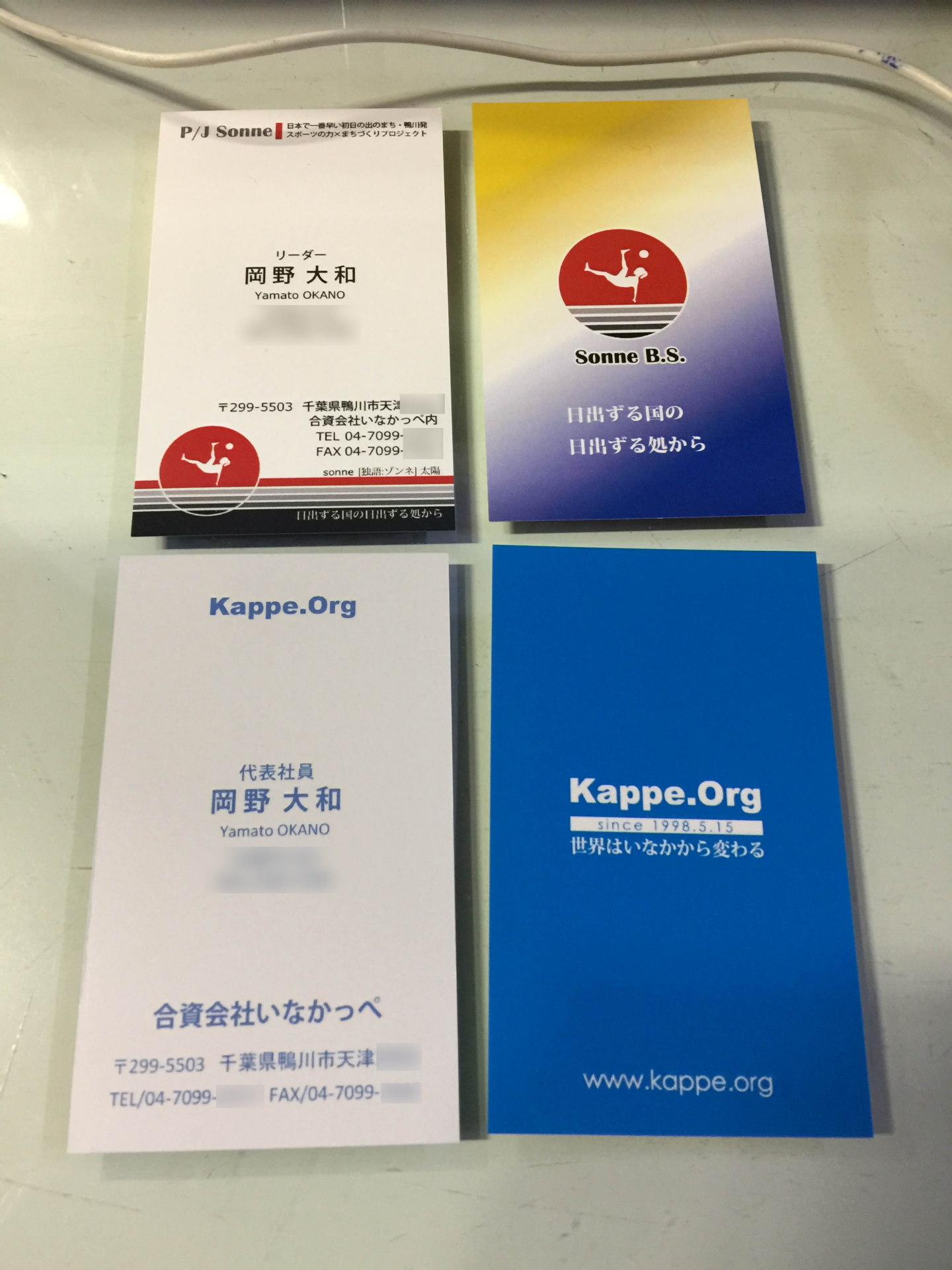[写真:新しい名刺ができあがった。いよいよスタート!