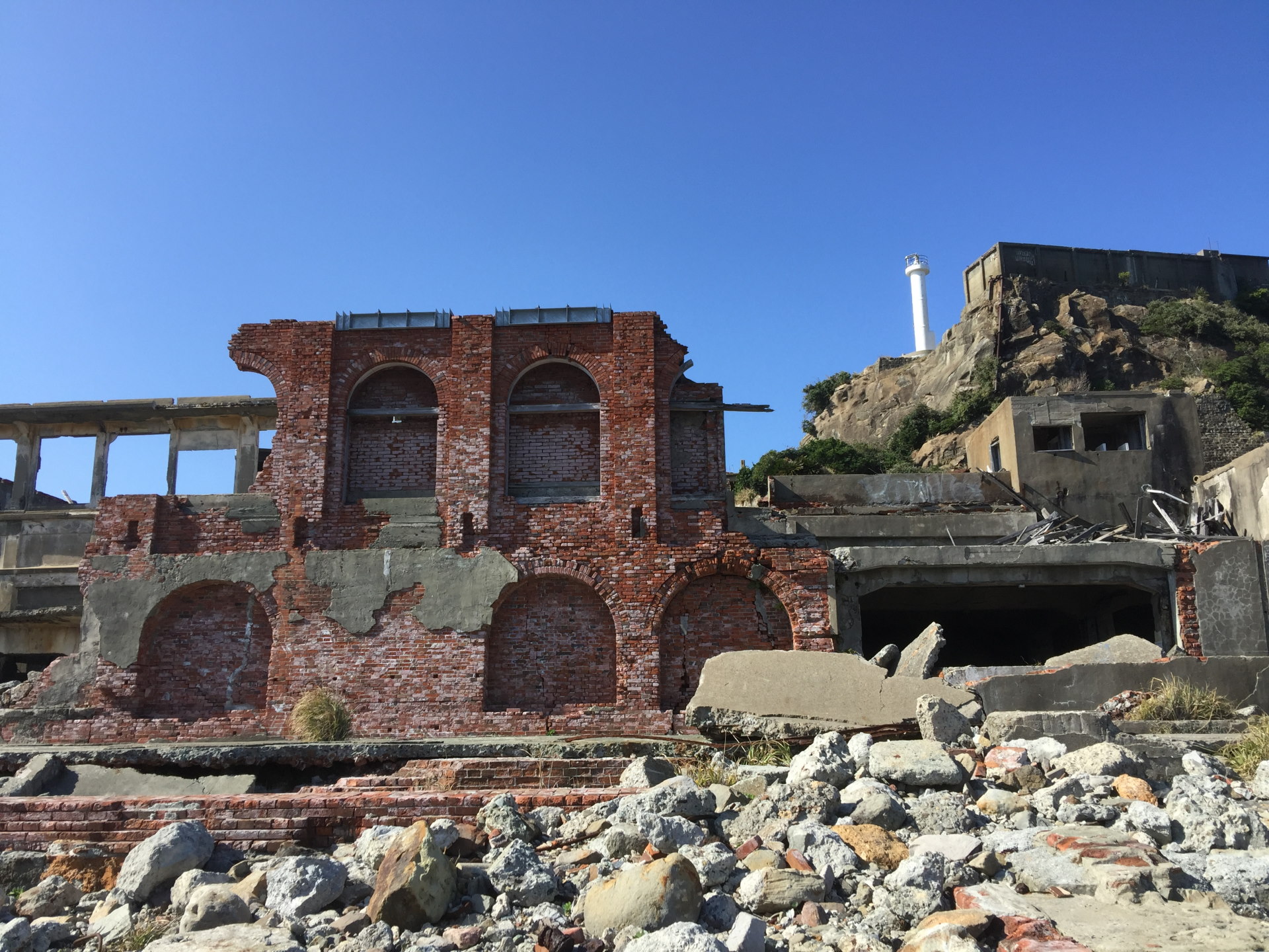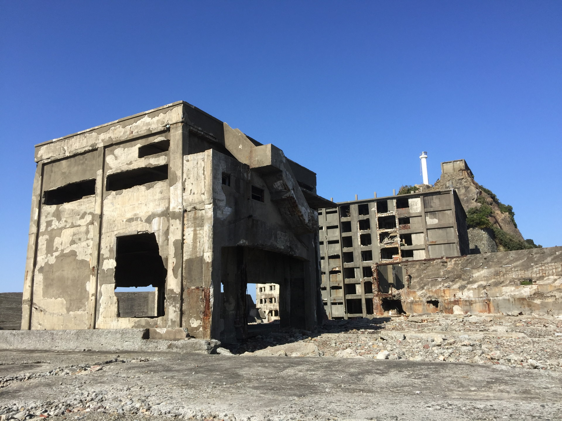 軍艦島は炭鉱の島として、1970年代まで全盛を誇っていたが、石炭の需要とともに炭鉱は閉山となり、一時5,000人の住民が所狭しと暮らして活気に満ちあふれていた島は無人島となって、以来、風雨にさらされながら、構造物は朽ち果てていっている。