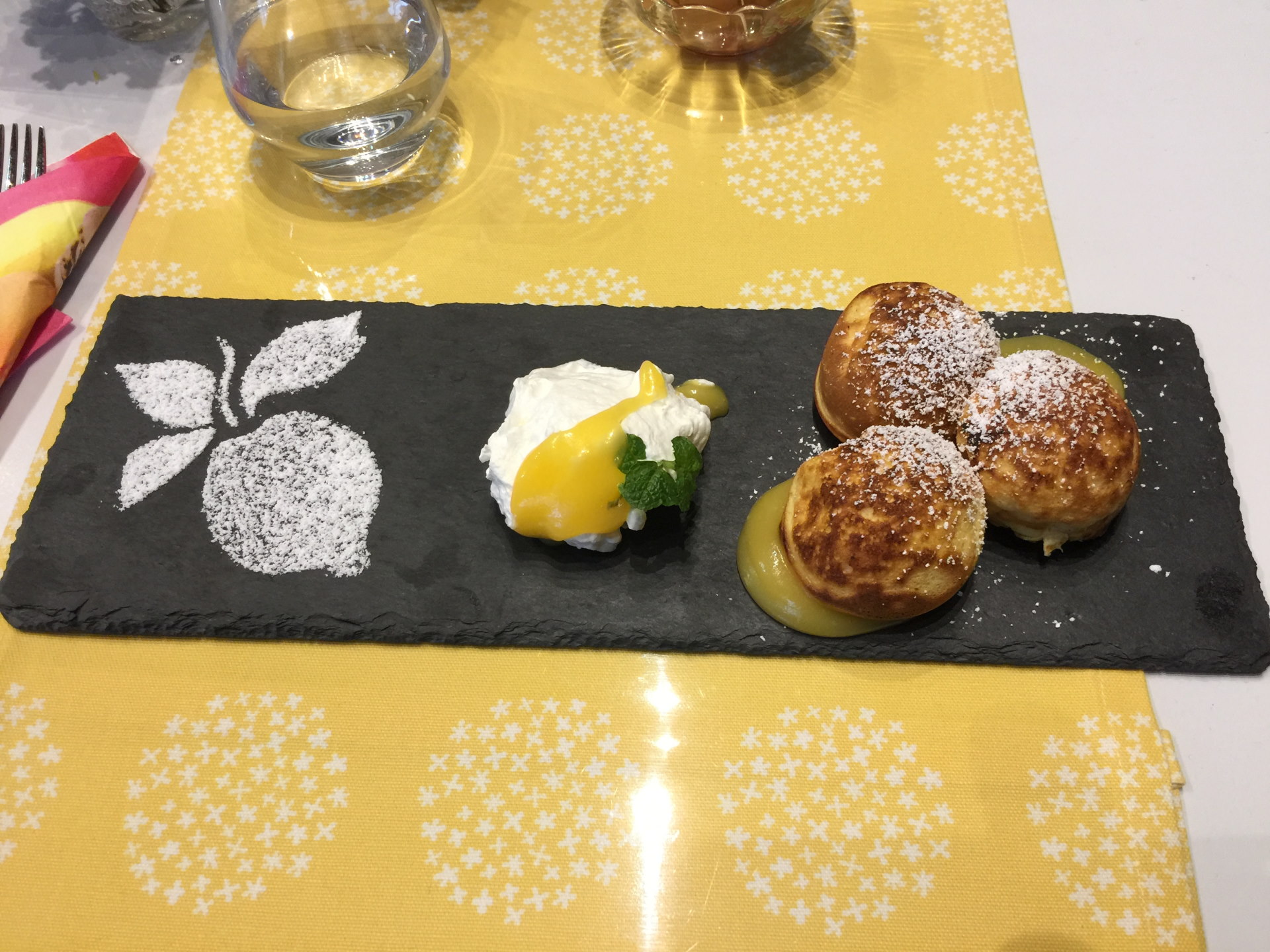 [写真:レモンソースといただくプチパンケーキ。あっさりしていて何個でも行けちゃう!