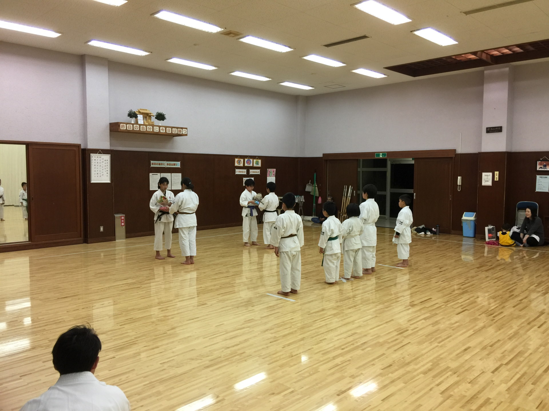 夜、通っている空手道場の少年の部壮行会が行われた。
