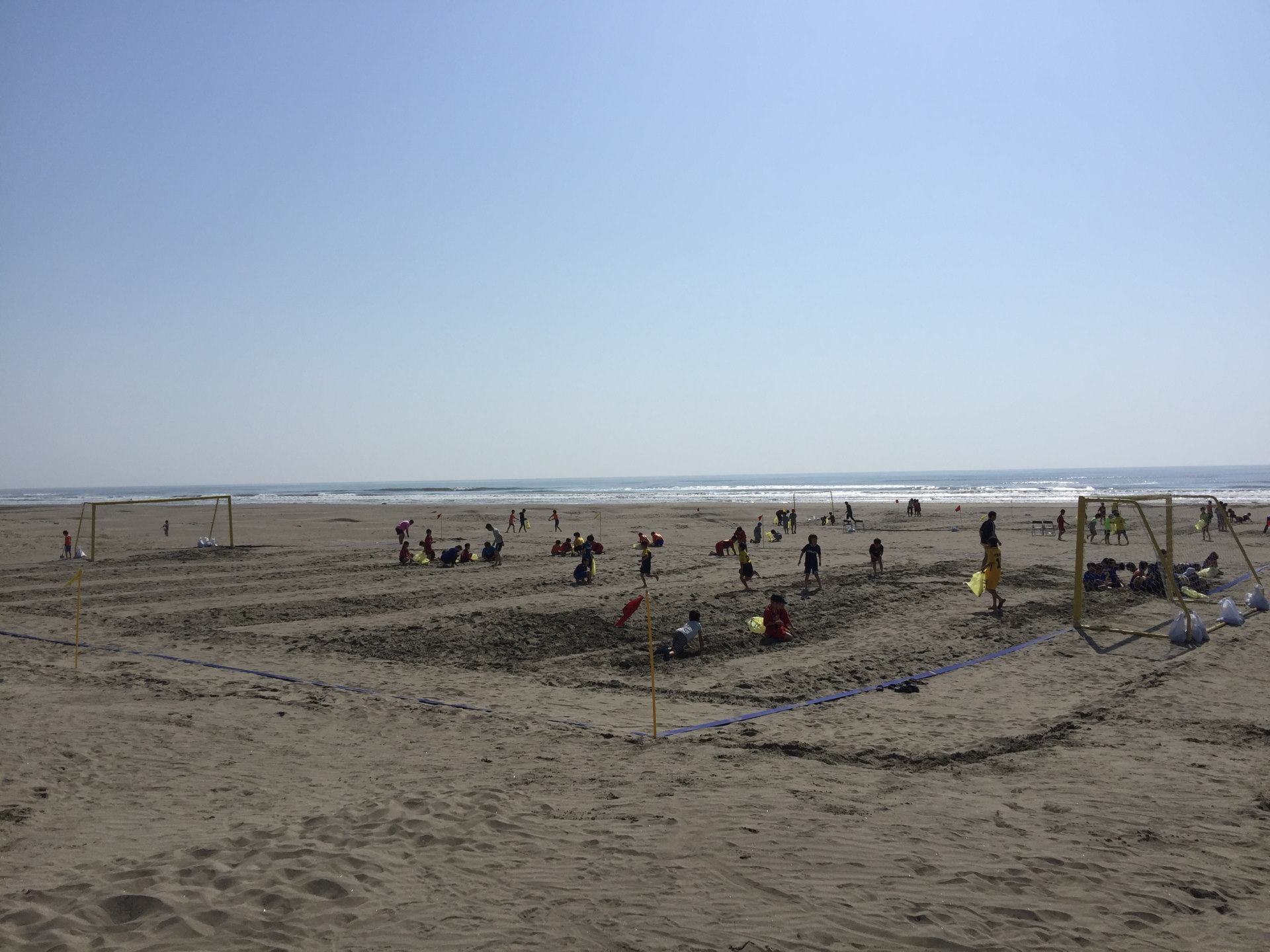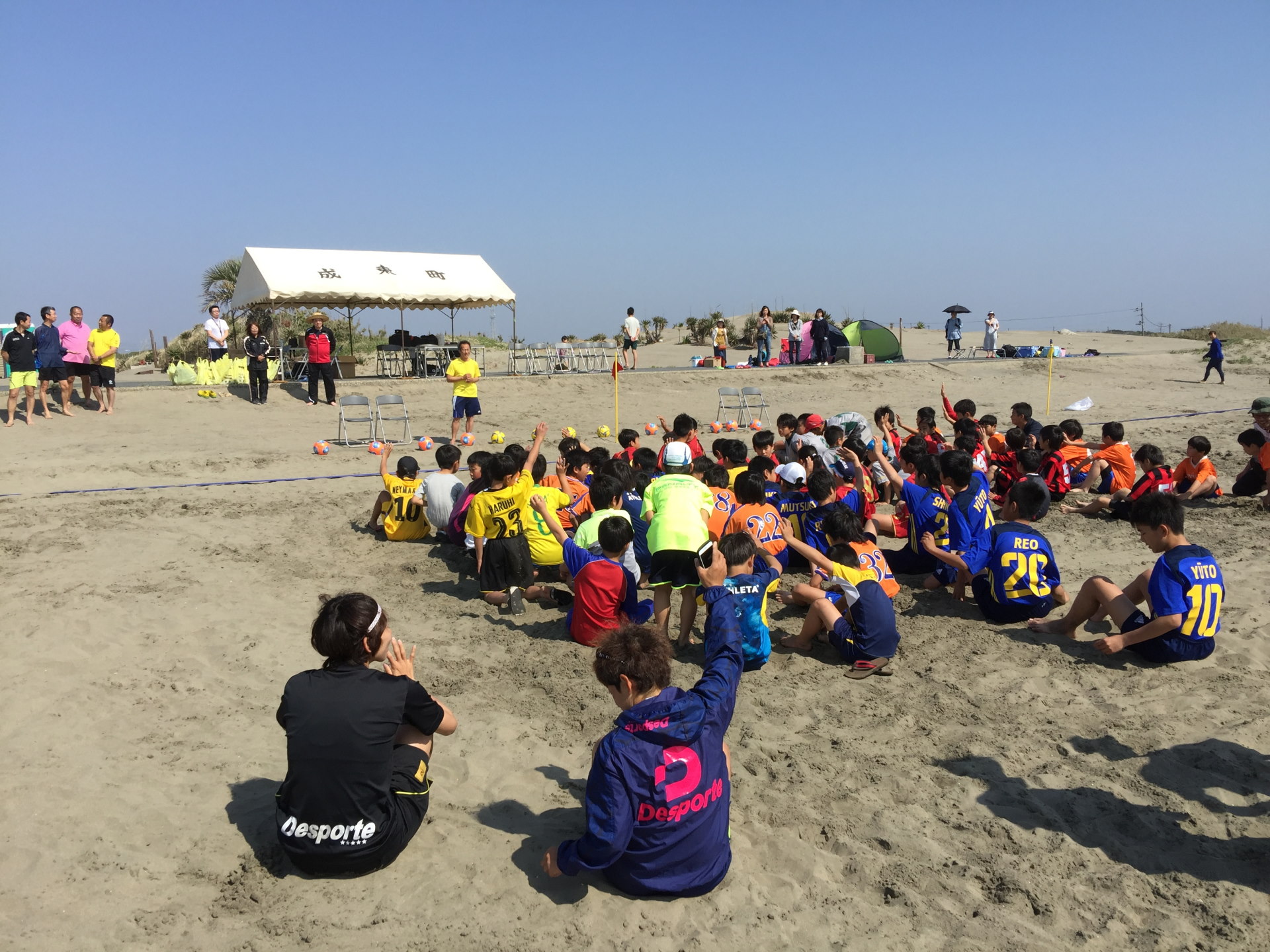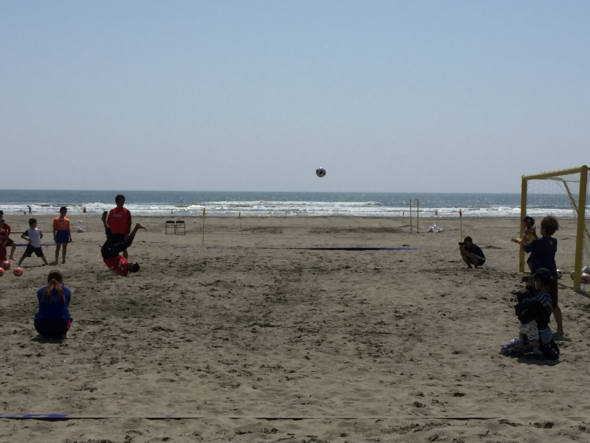 1日目の今日は小学生チームを集めての、ビーチサッカークリニックと午後からは交流試合が行われた。