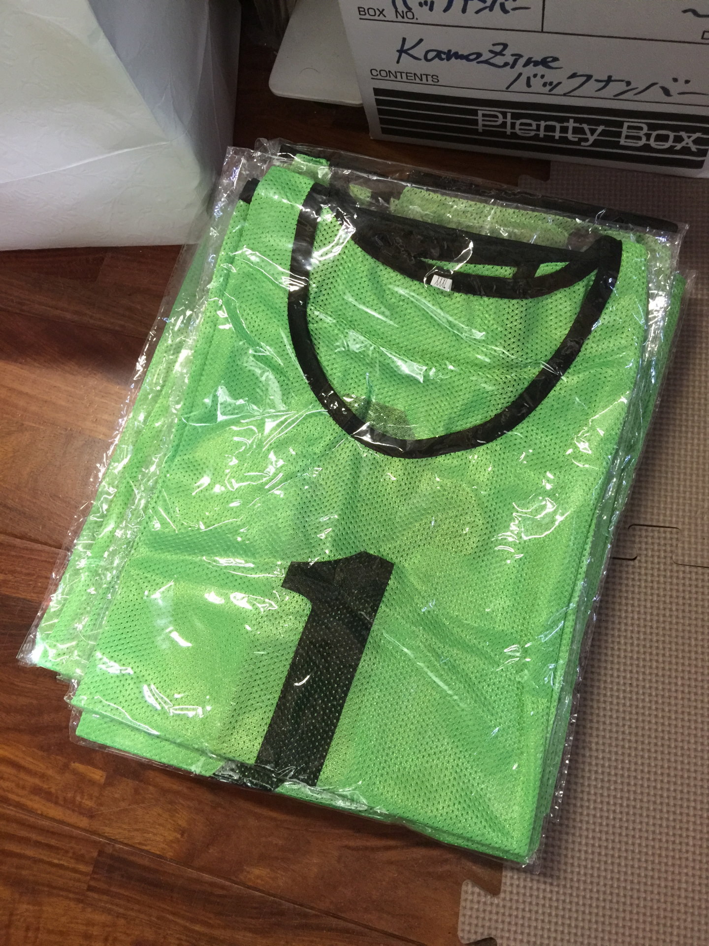 [写真:マーカーに続いて、ビブスも届いた。サッカーチームみたいになってきた。
