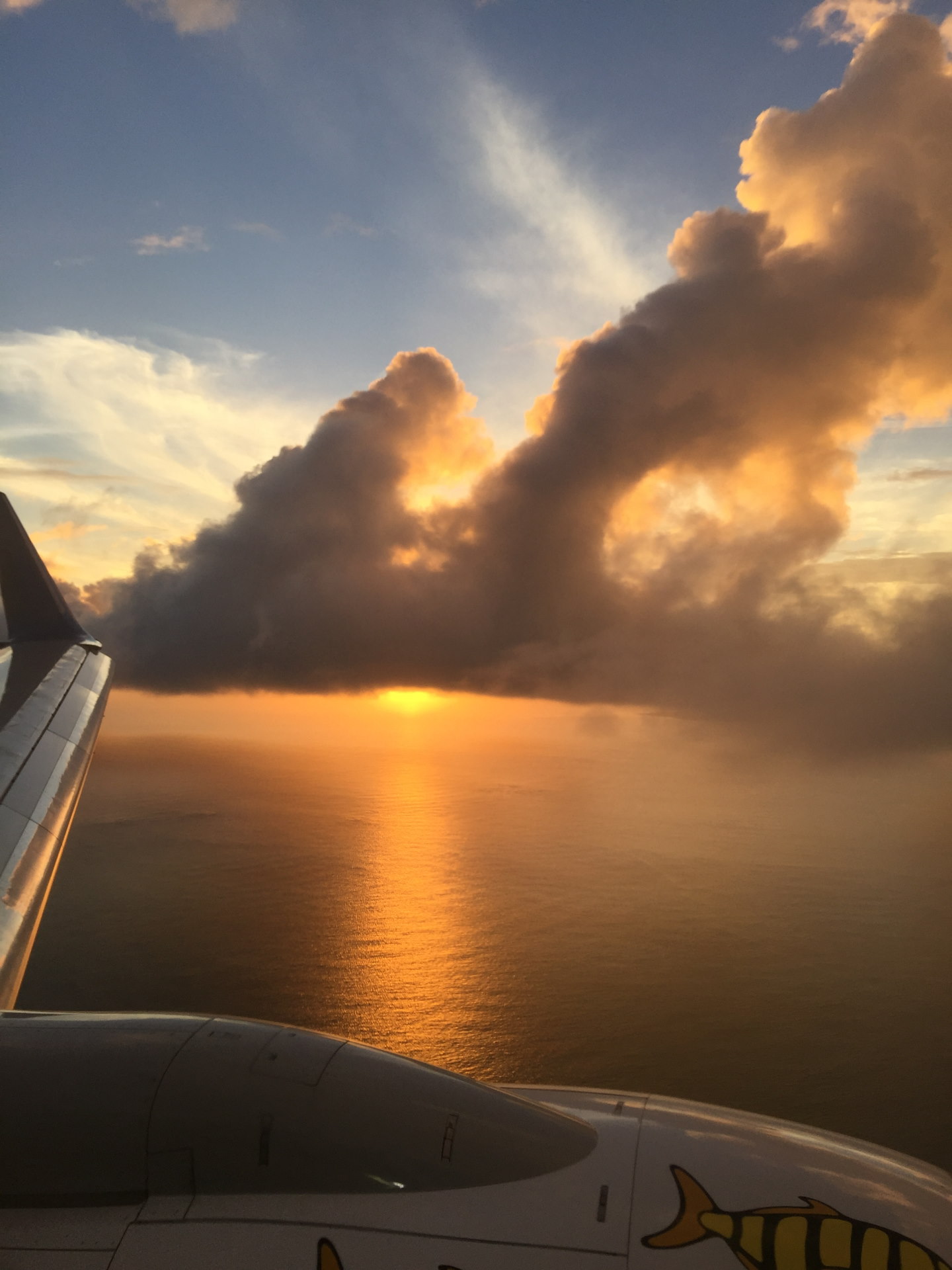 [写真:機内から夕焼けの空を拝めた