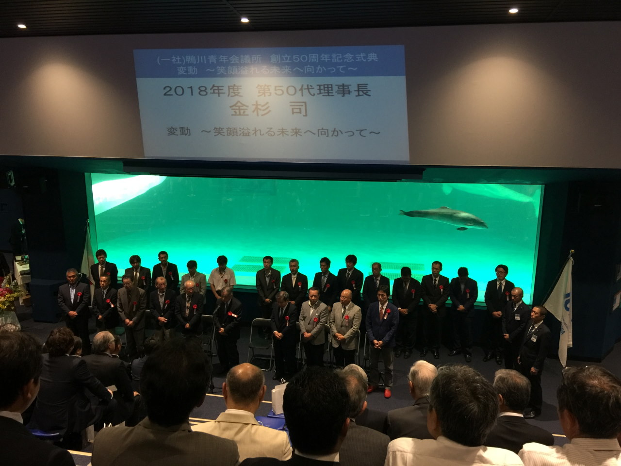 夕方5時30分から鴨川シーワールドを会場として行われた、鴨川青年会議所の創立50周年記念大会にOB会員として出席した。