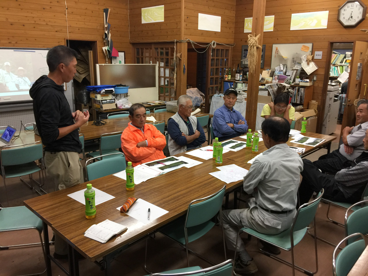 数ヶ月来盛り上がってきた草刈り大会がいよいよ実現に向けて大きく動き出すこととなった。今日の会議では実際にプレ大会をやってみようという提案がなされた。ぶっ飛んだ発想に、農業従事者のおじいさんたちもちょっと戸惑ったようすだったが(笑)、しかし、みな真剣に考えてくださり、活発な意見交換がなされた。