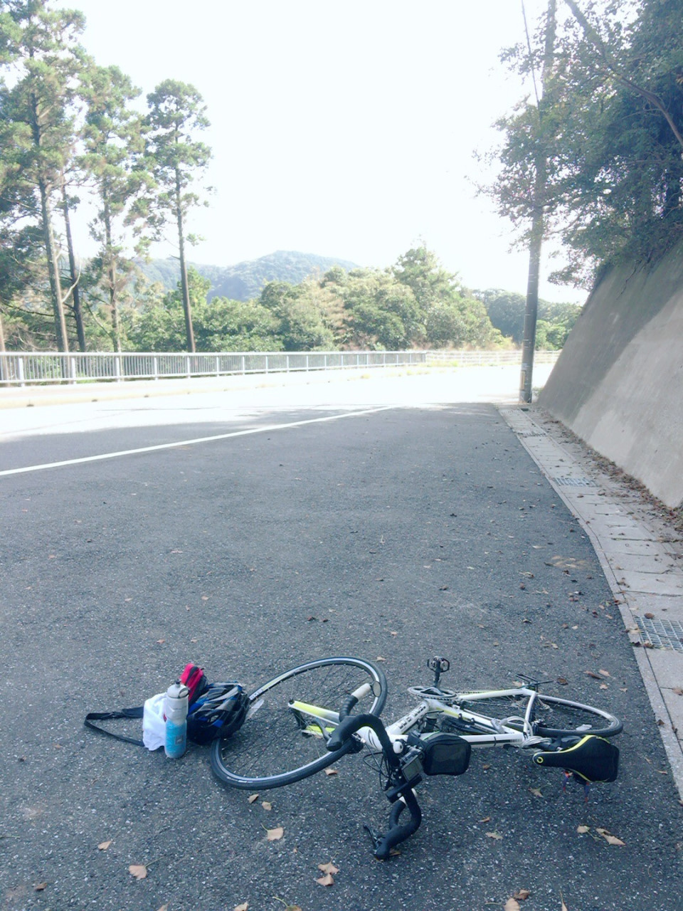 波切不動尊を超えて、ヘアピンカーブを曲がり、なんとかがんばっていったが、結局途中で無念の降車。そこで暫時休憩。