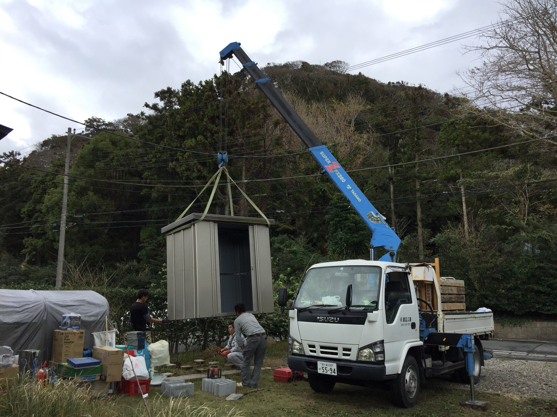 午前中、横浜から鴨川へ戻り、今日は一日新オフィスで仕事をしたり、また、荷物を整理。午後には離れの解体に備え、作業エリアにかかる物置の移設作業も行った。