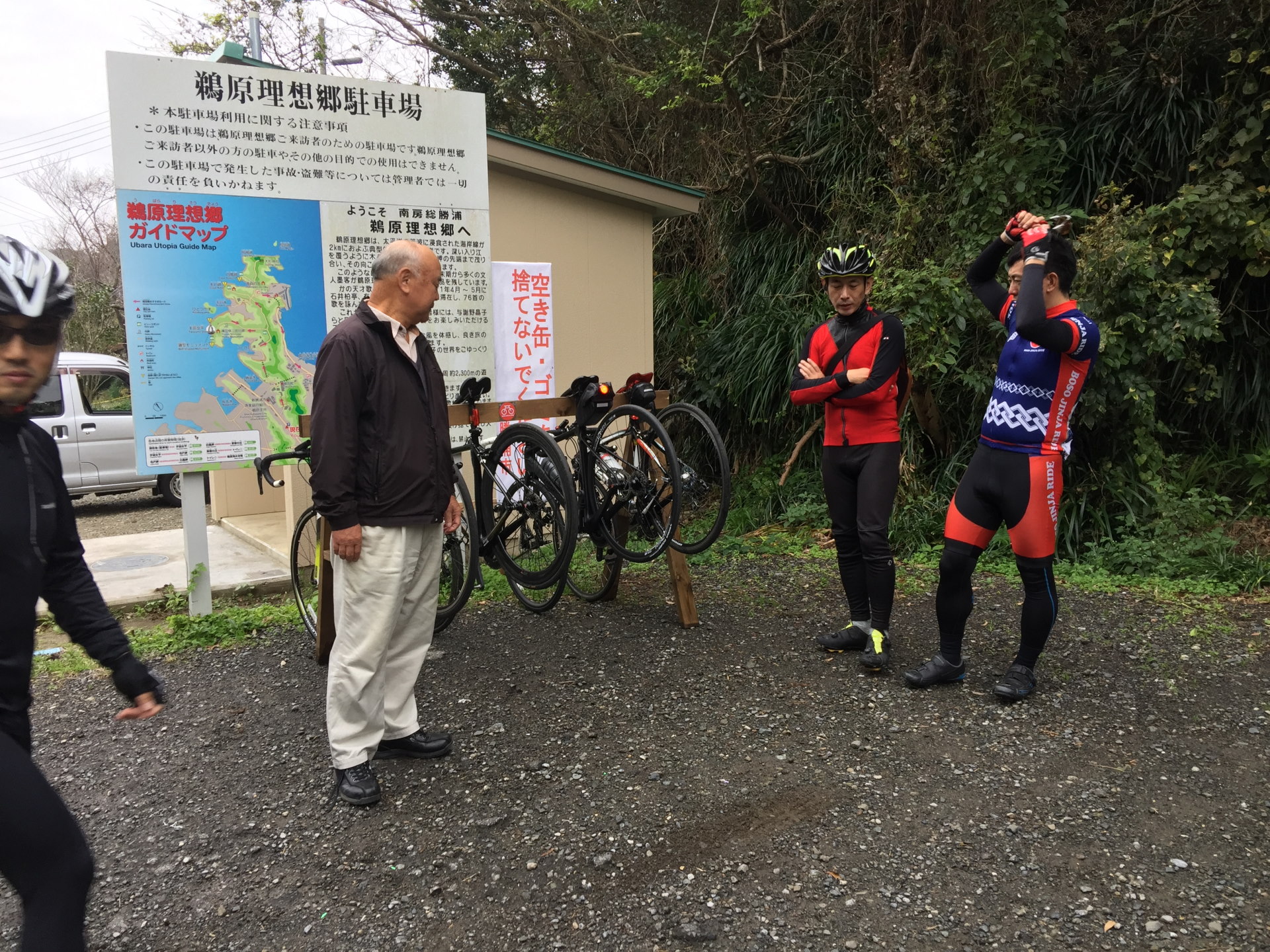 途中、鵜原理想郷にサイクルラックを寄贈。