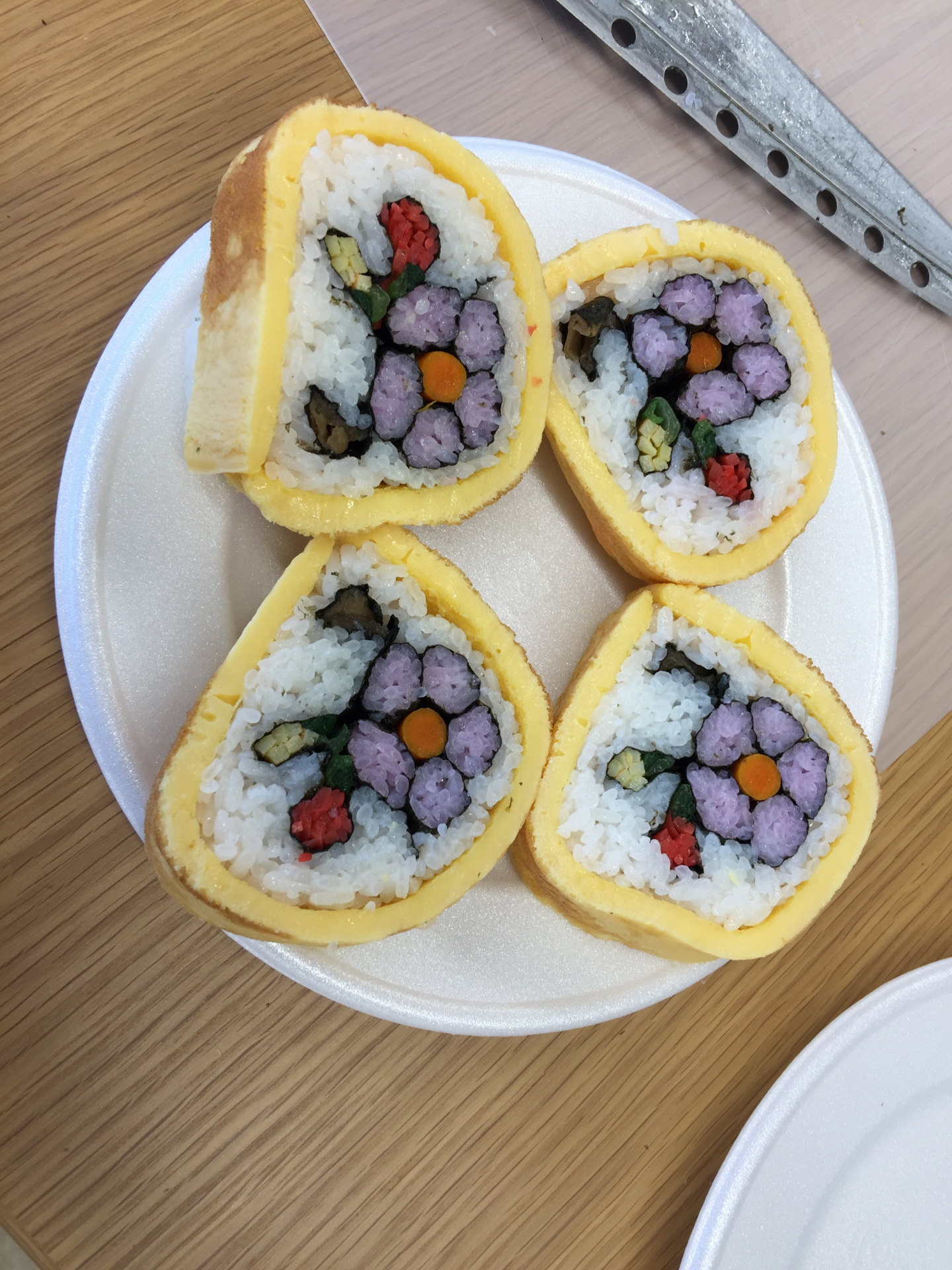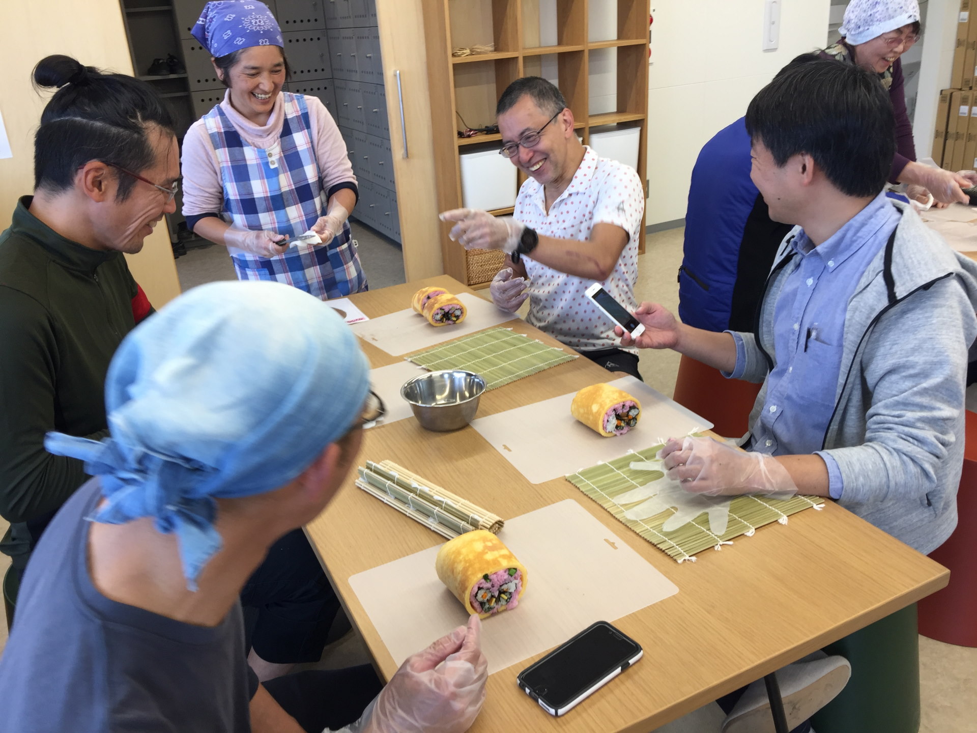 サイクリングの後は開発工房調理室での、花味結さんによる祭り寿司づくり体験。