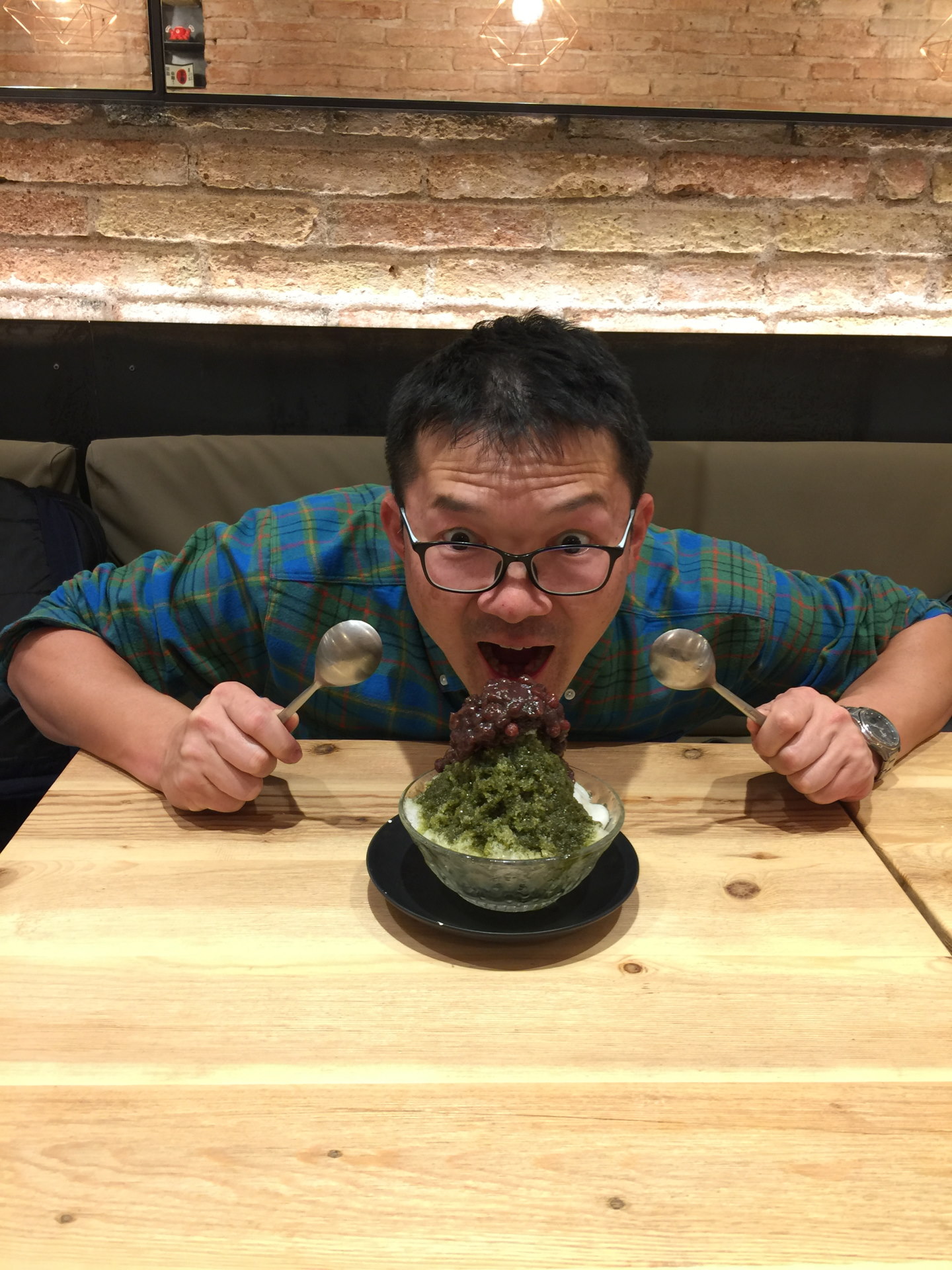 [写真:抹茶のかき氷をいただく!なんか安心する味!!