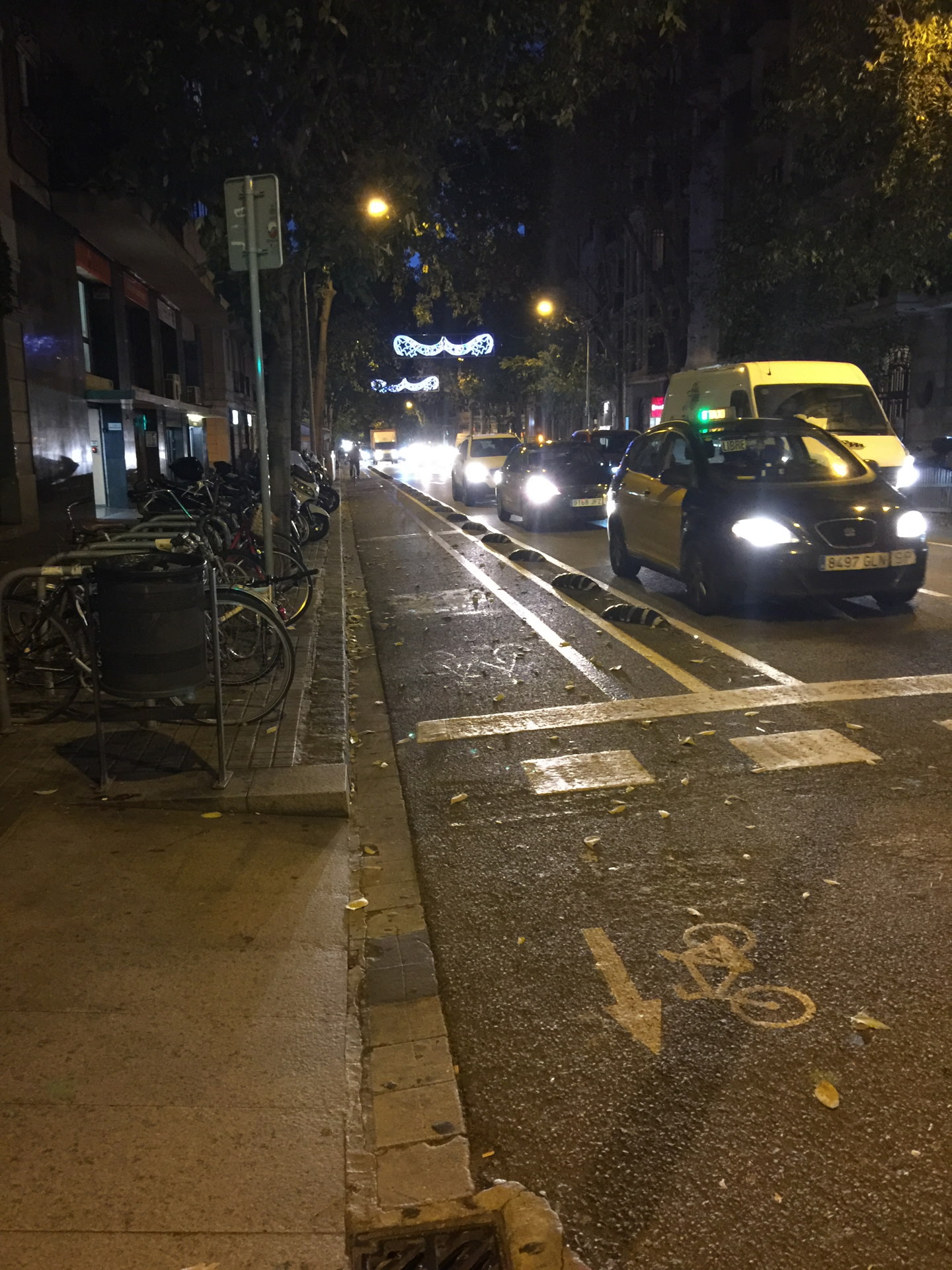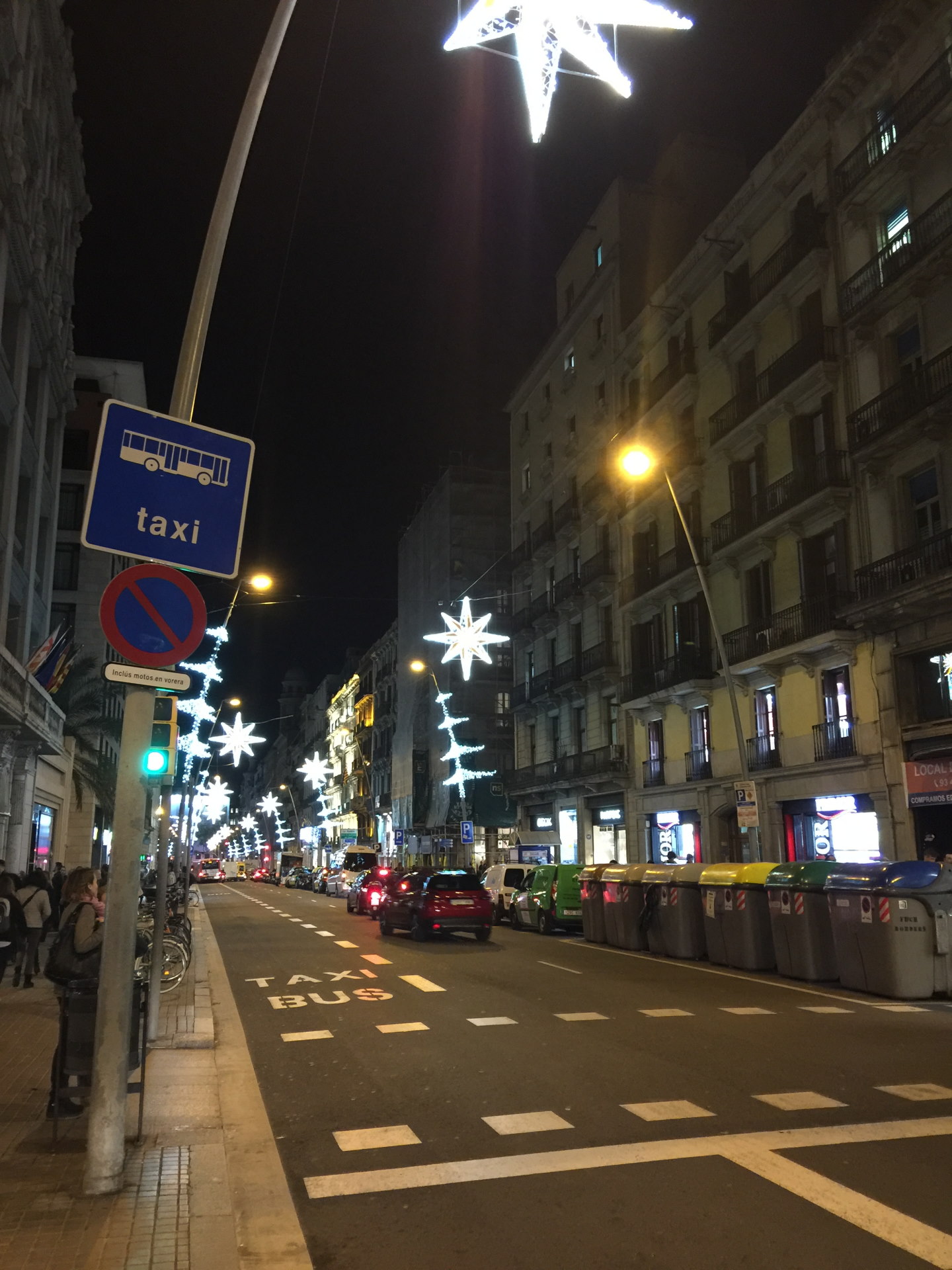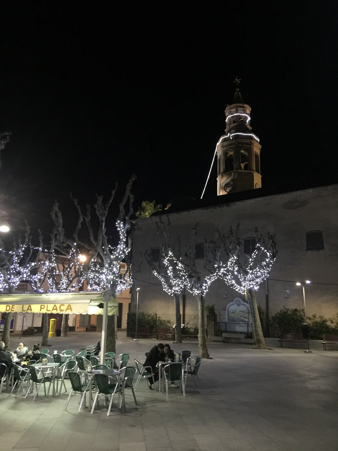 クリスマスのイルミネーションを眺めながら、Premia de Marのオープンカフェで遅い夕食。
