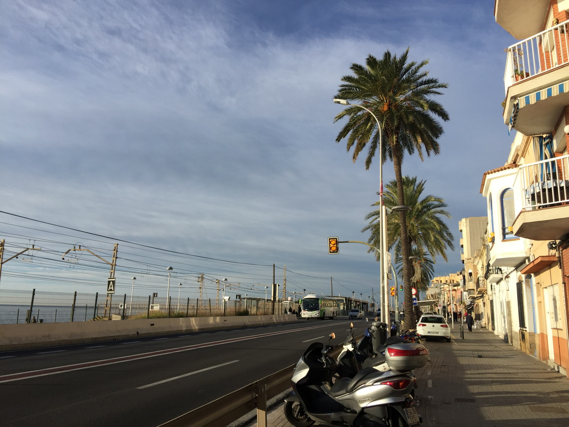 Premia de Marは海辺にある街で、夕暮れも素敵だが、朝がまたすばらしく、海は朝日に照らされ、キラキラ輝いていた。