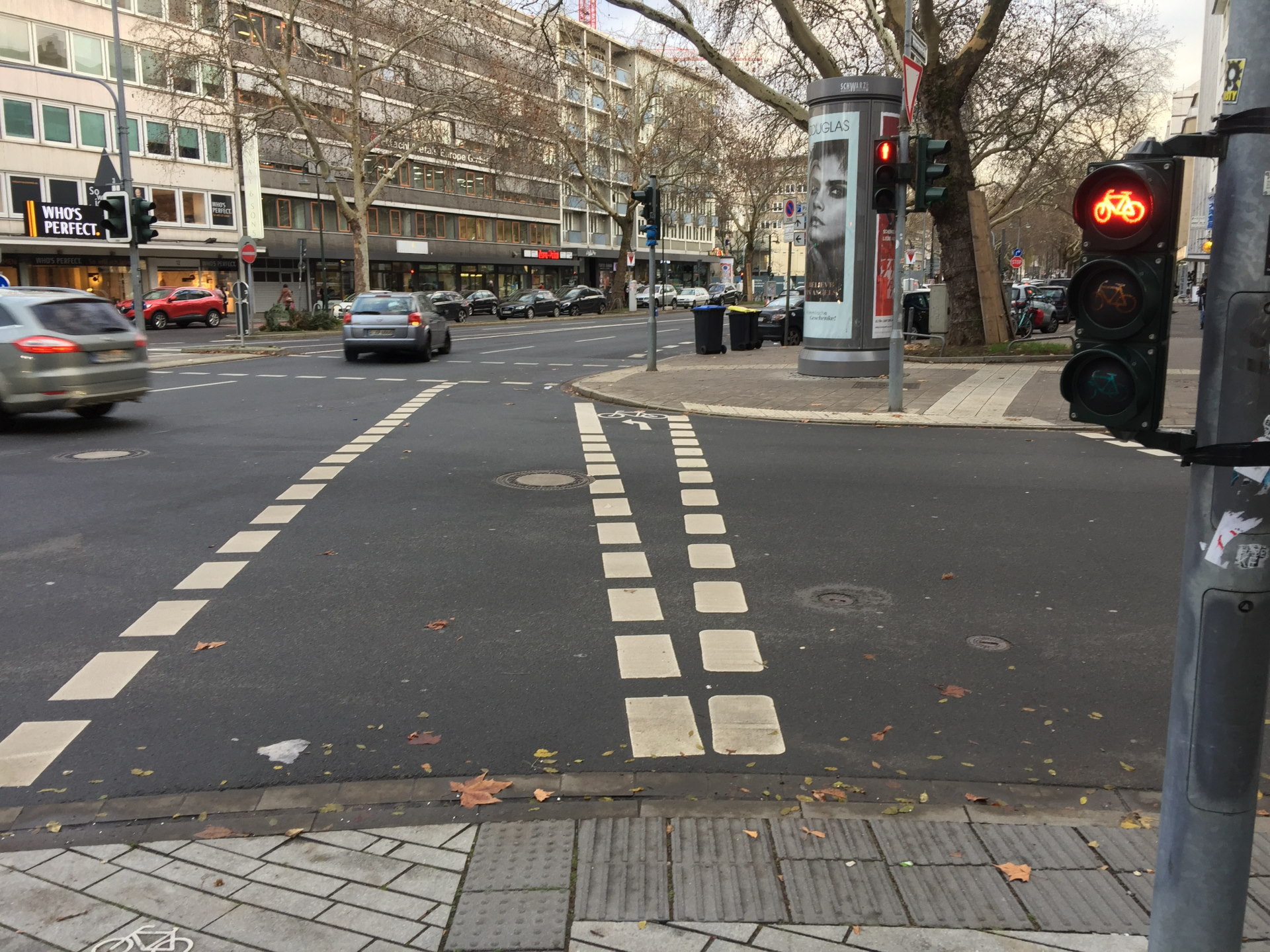 [写真:デュッセルドルフ市街地の自転車レーン
