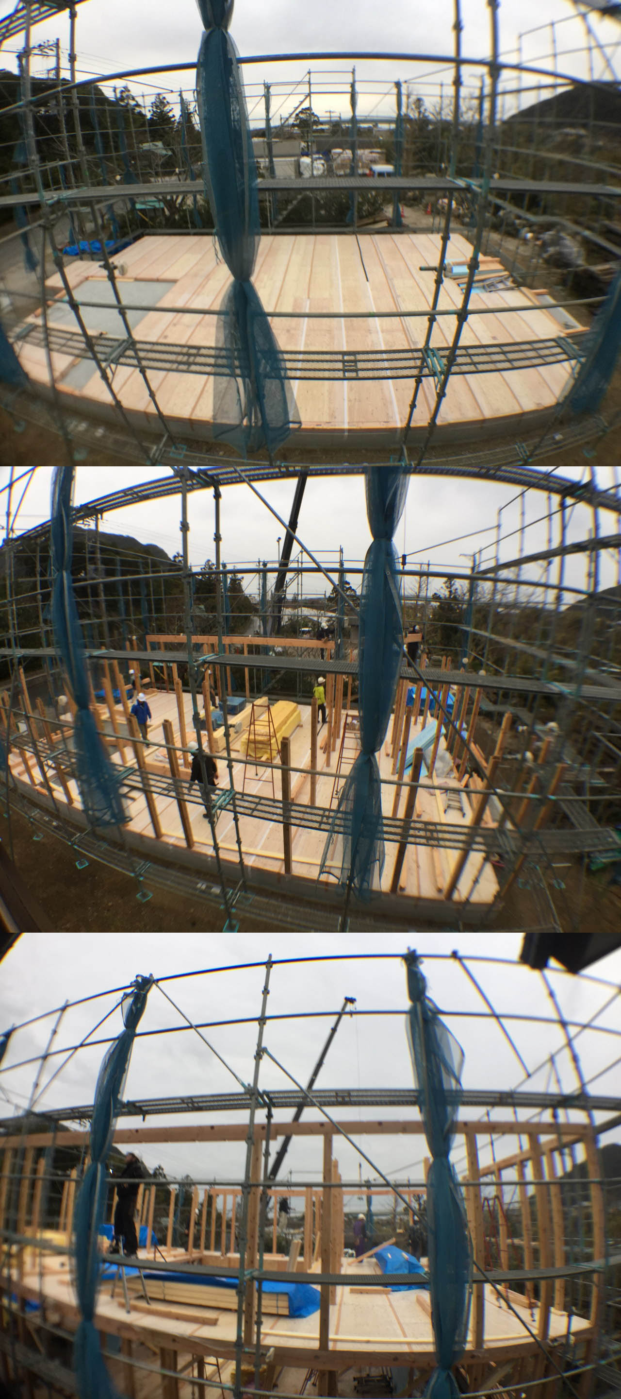 職人さんたちによってあっという間に木組みが立ち上がっていく。