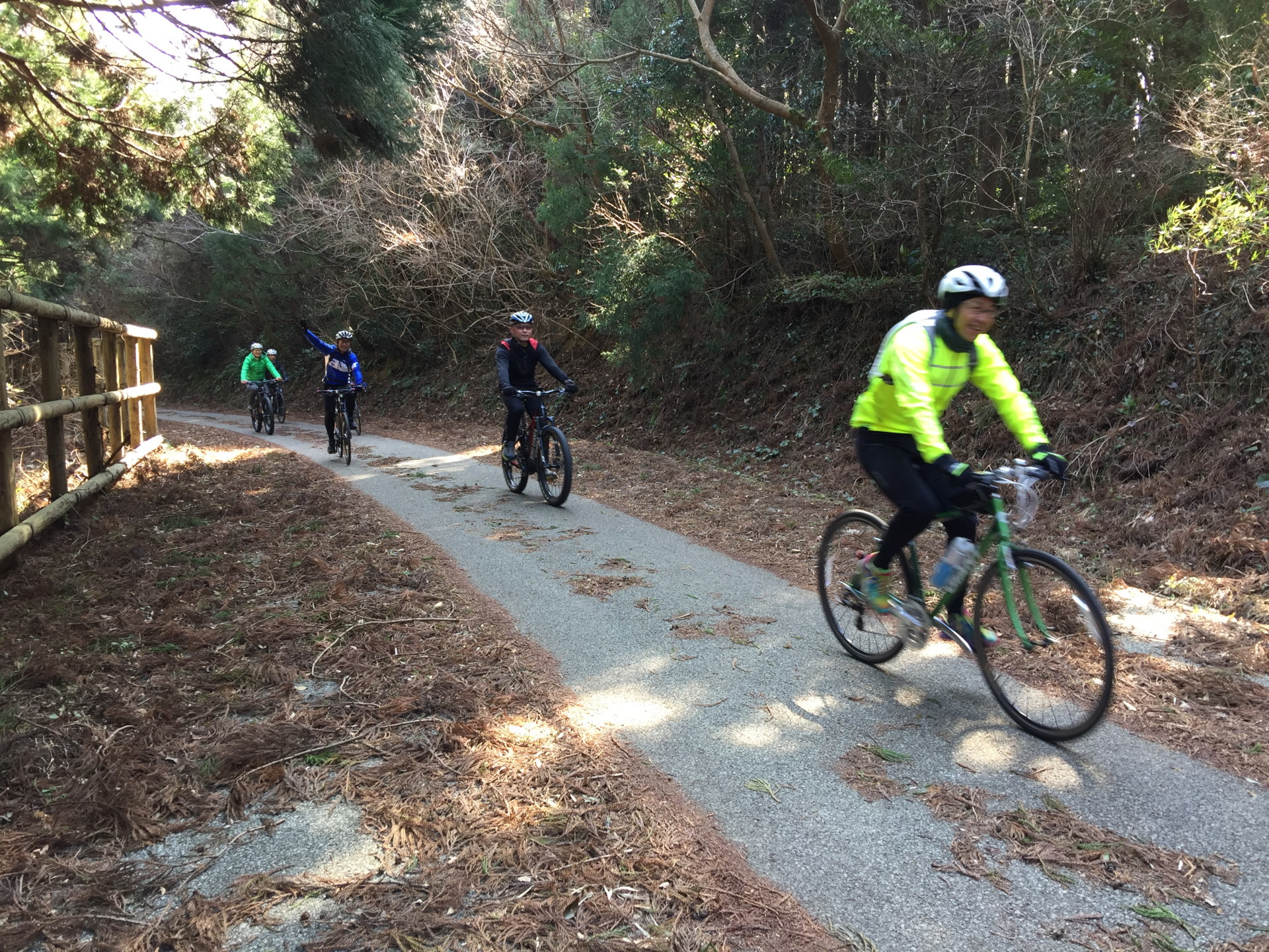 先頭を見ると、スポーツバイクなんてほとんど乗ったことのない館山市職員の林さんがトップを走っているではないか。