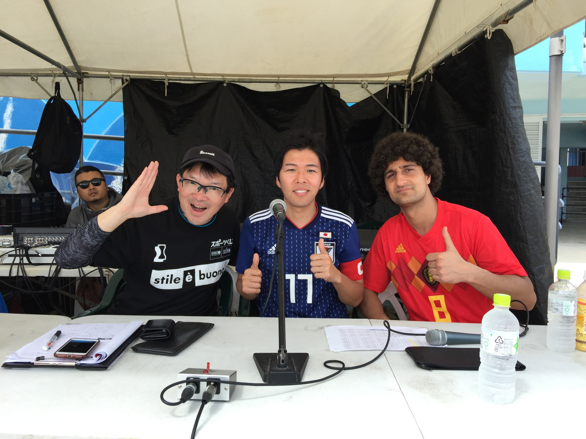 “長谷部選手”と“フェライニ選手”とともに実況・解説をしてなかなかに楽しい時間だった。さすがは芸人さん。次から次からおもしろいセリフが飛び出す。一緒に放送しながら感心してしまった。