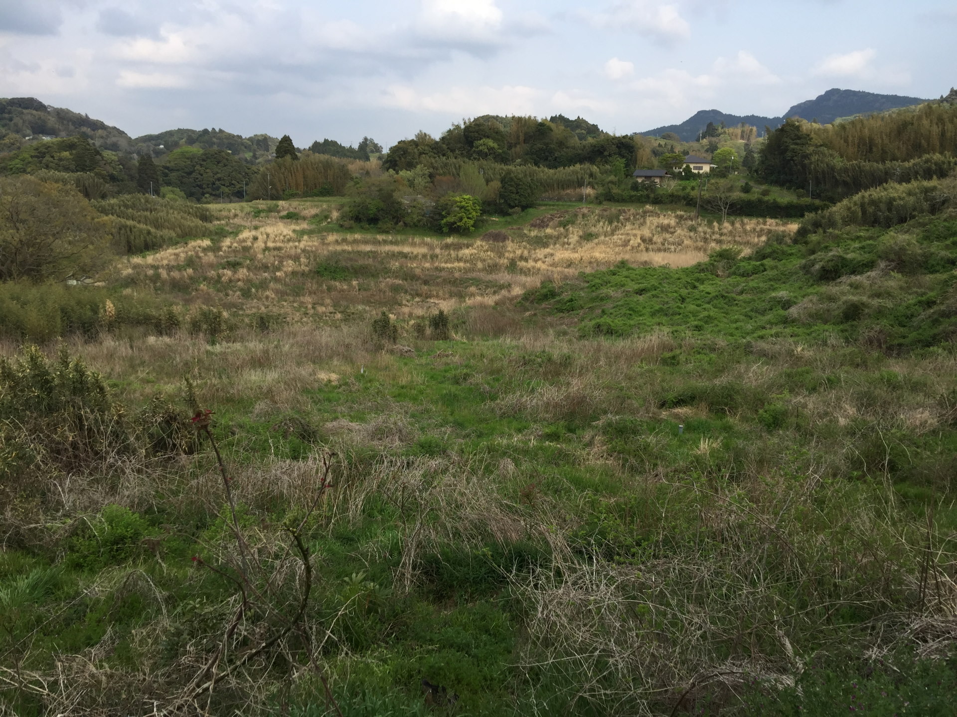 [写真:神社前には棚田の耕作放棄地が…いつか再整備したい