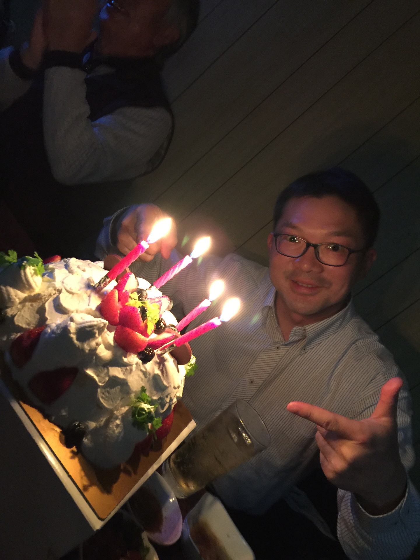 [写真:突然誕生日ケーキで、数時間後に迫った誕生日をお祝いいただいた☆うれしー!