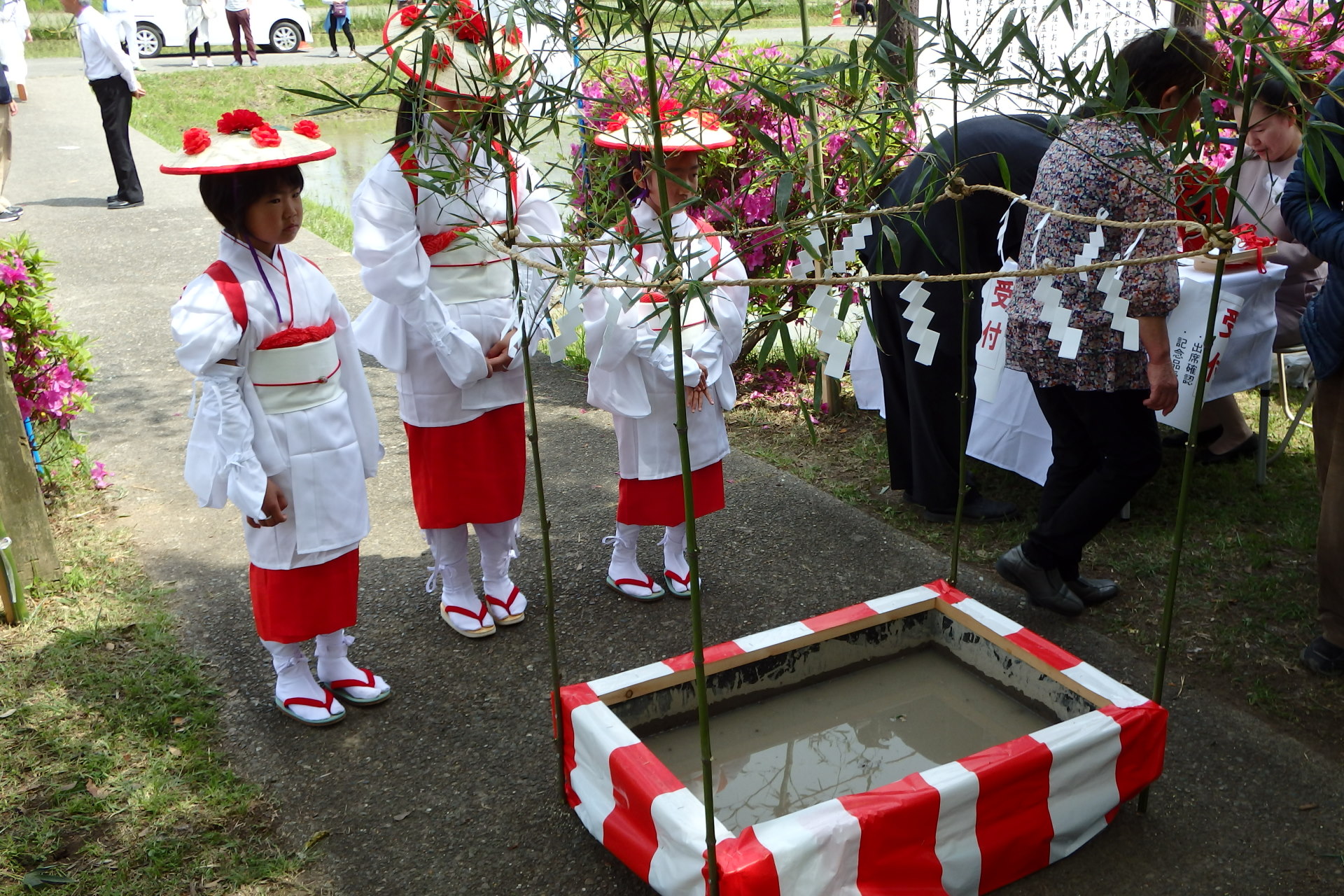 祭典では地元の女子児童が早乙女となり、御田植をしたほか、里舞の披露などがあった。