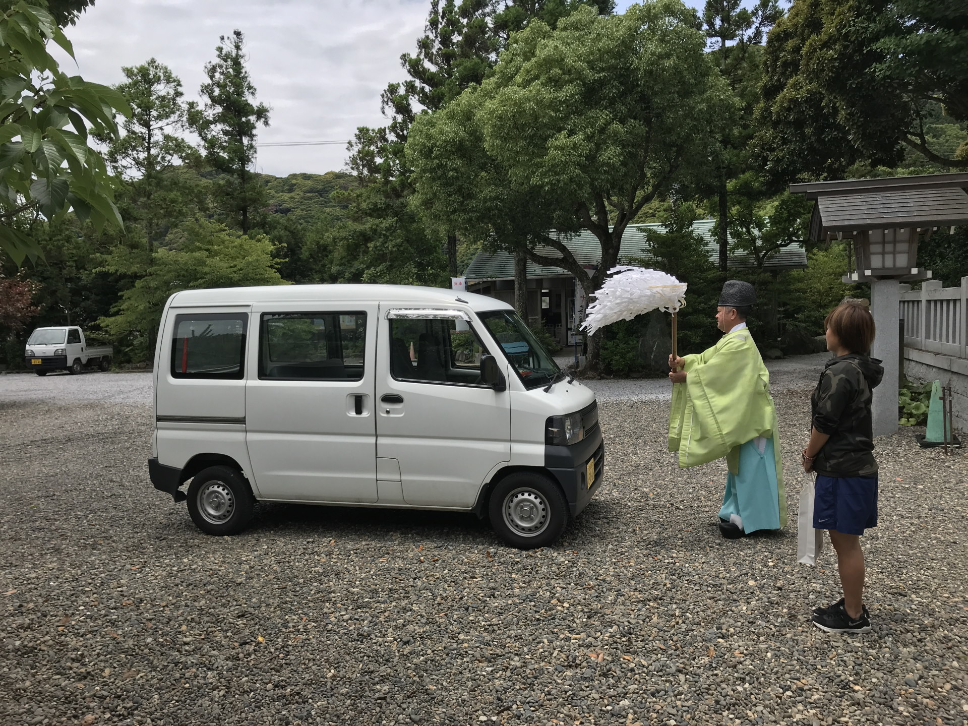先週土曜日に納車となった、いなかっぺの箱バンをお祓い。
