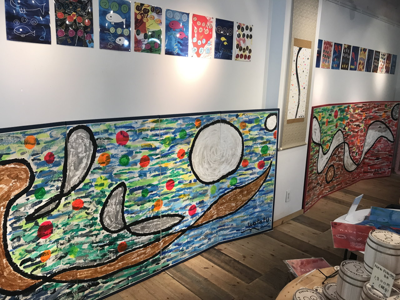 Wataruアートギャラリーでスタートした「マハロ&びょうぶ展」を見学がてら、Wataruさん、百瀬さんとミーティング。