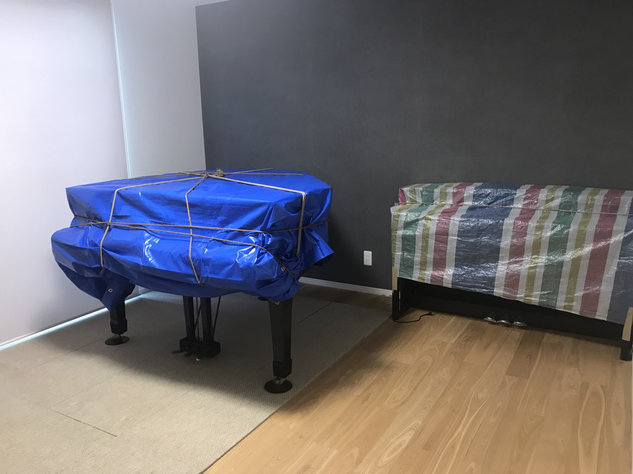 [写真:ピアノは動かせないので、カバーをかける