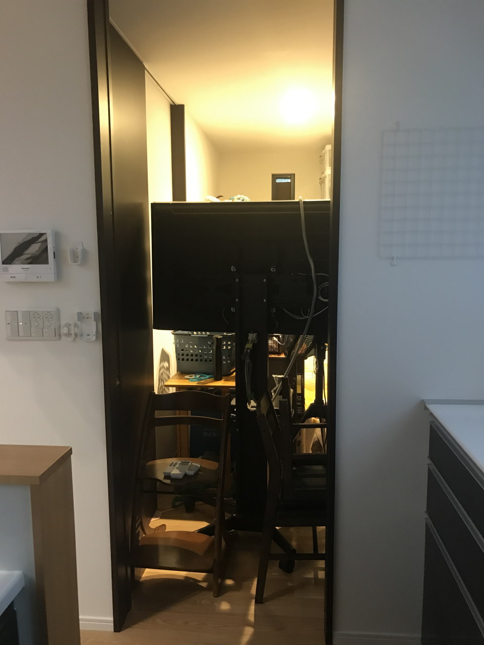 玄関土間を広くとったこと。パントリーやクローゼットの収納スペースを北側に取ったことが功を奏して、ほぼ全てのものをそちらに移動することができた。