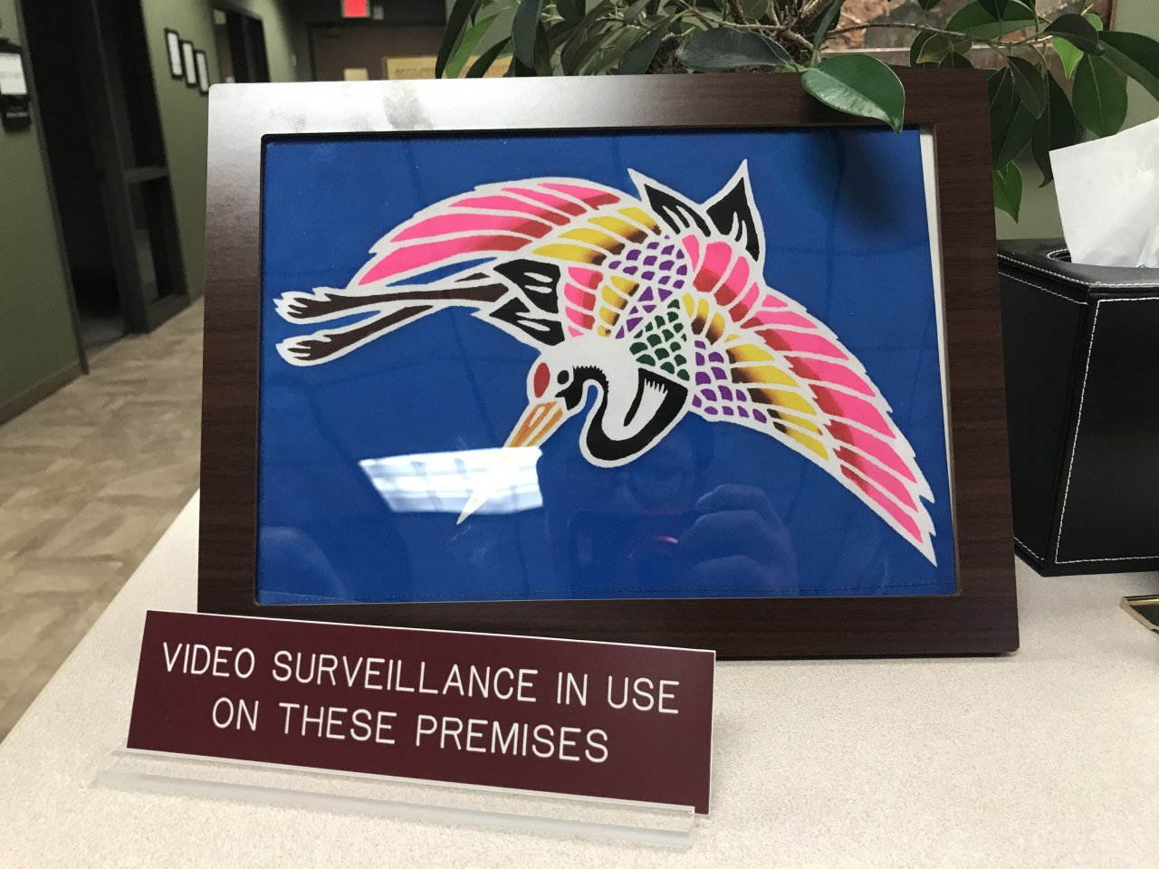 [写真:受付におそらく鴨川で作られた万祝染めが飾られていた