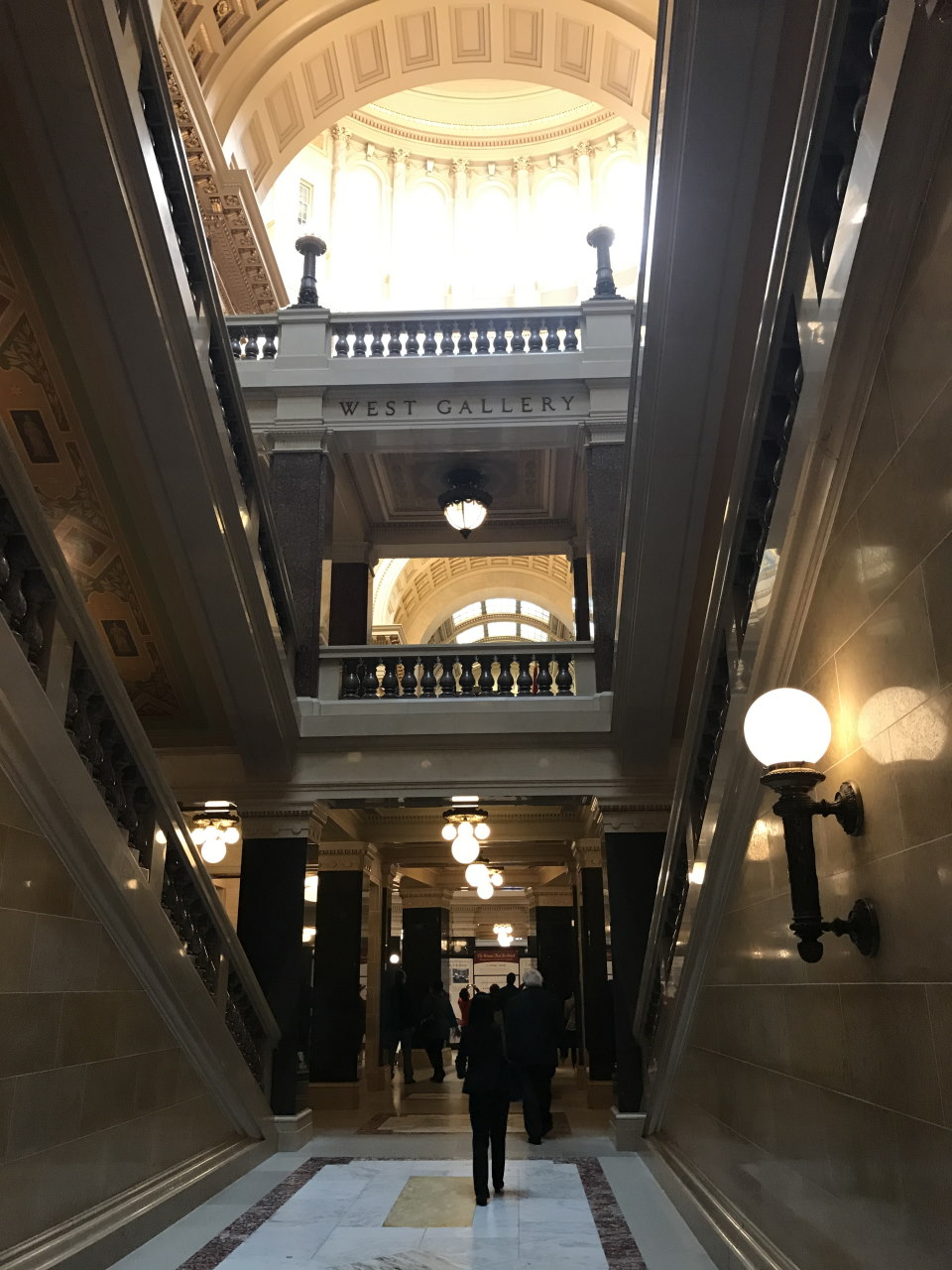壁にはアメリカやウィスコンシンの歴史をシンボリックに描いた壁画などもあり、なんとも歴史の重みを感ずる空間だった。