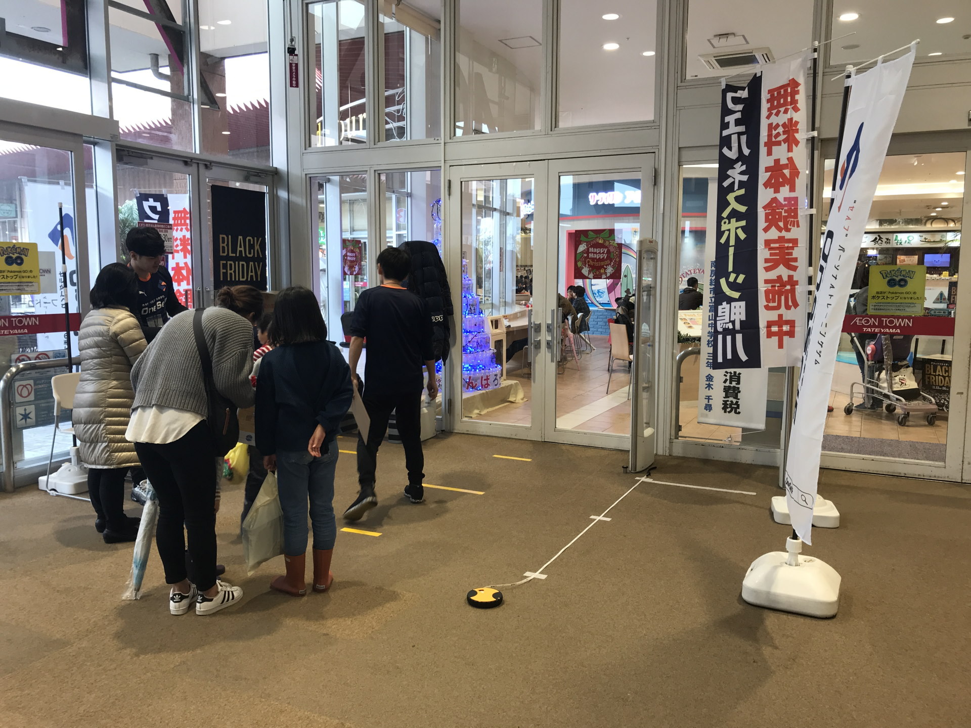 一日中雨になってしまい、当初予定していたモール中央部にあるセントラルコートでの開催ではなく、イオン店舗入口の室内を使ってのイベント開催となった。