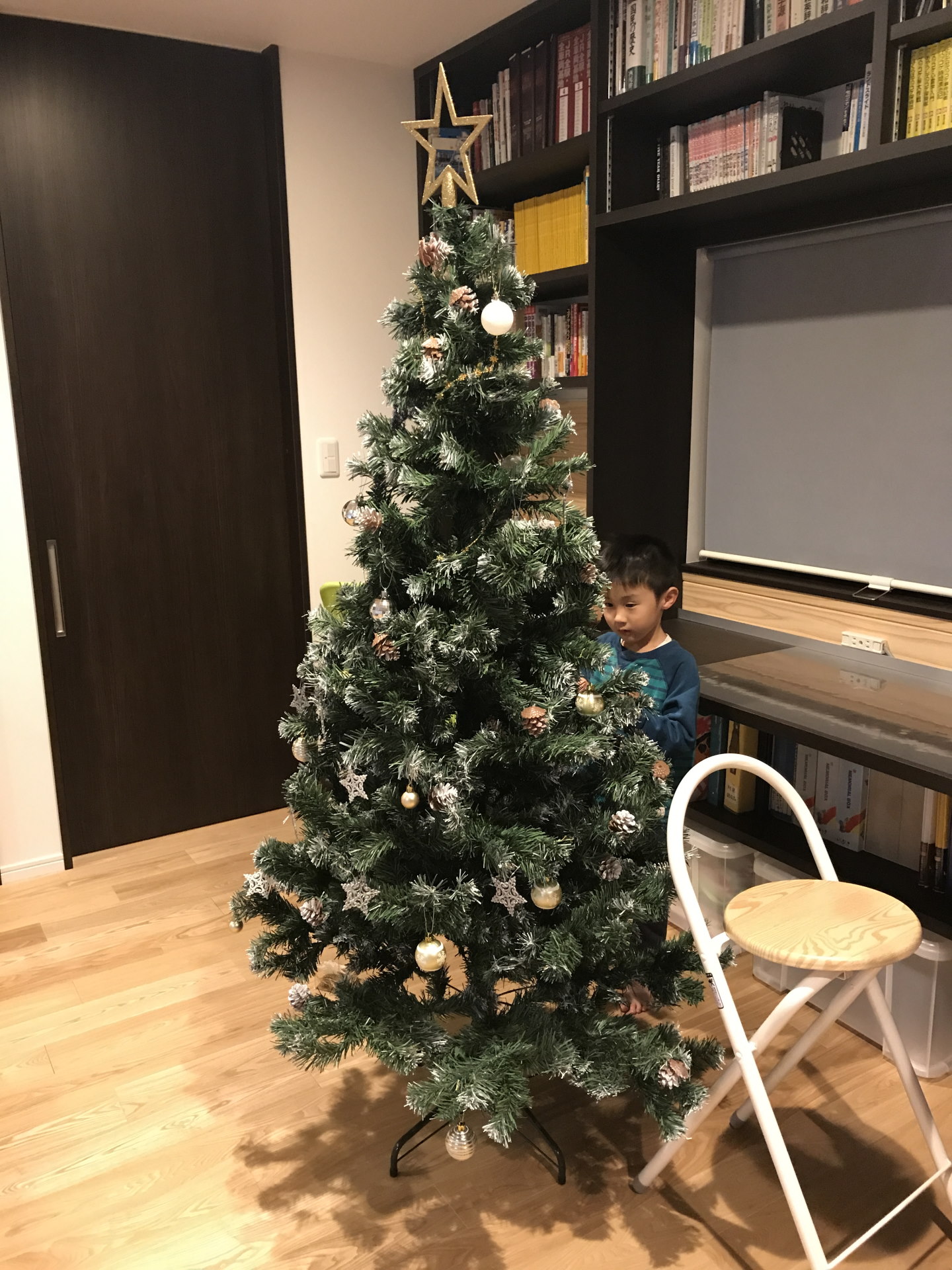 帰宅すると、ちかちゃんといぶたんがせっせとクリスマスツリーの飾り付けをしていた。