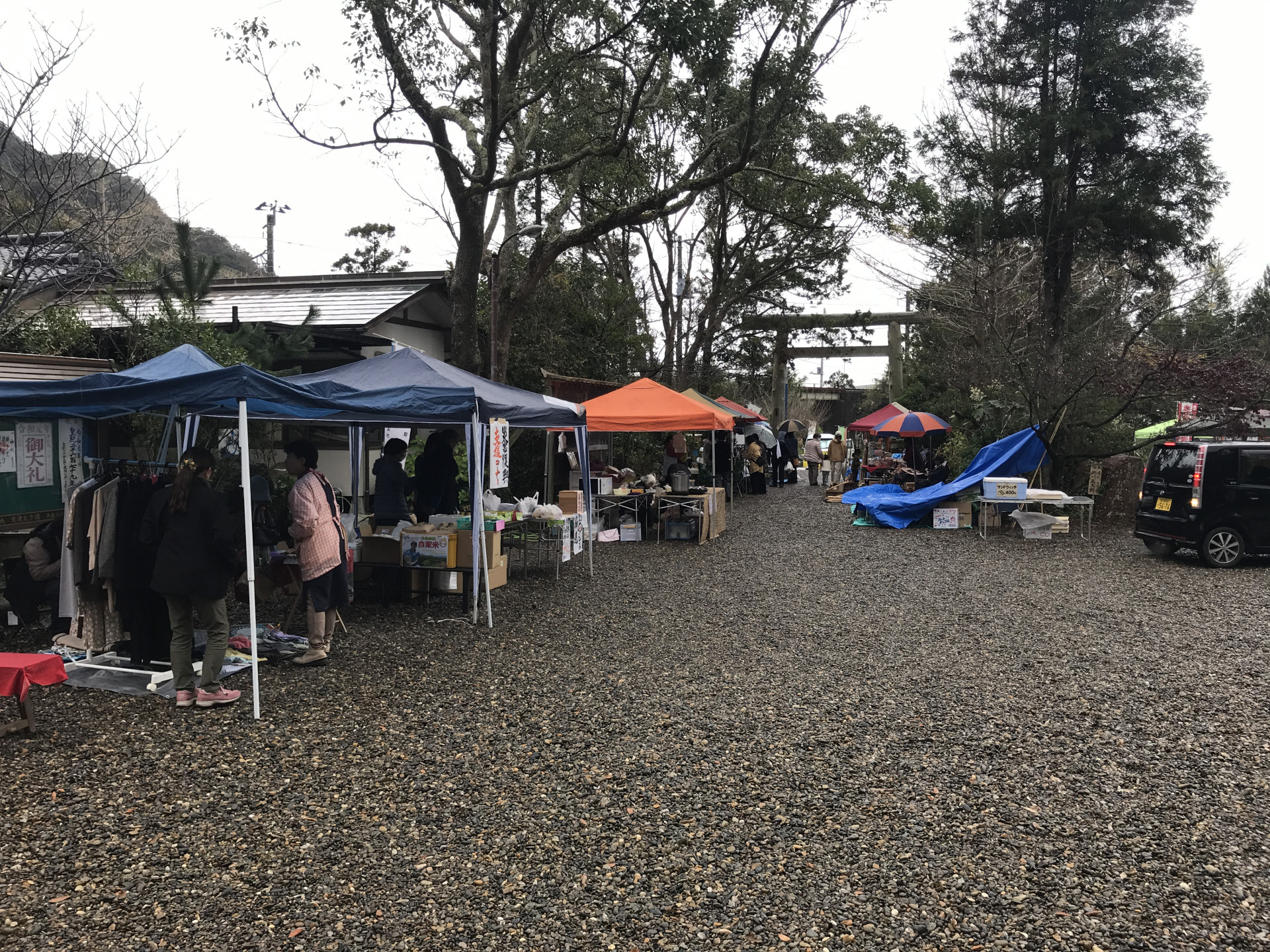 時折雨がぱらつく、あいにくの天気ではあったが、日曜ということもあり、お店も多く軒を連ね、参拝者で境内はにぎわった。